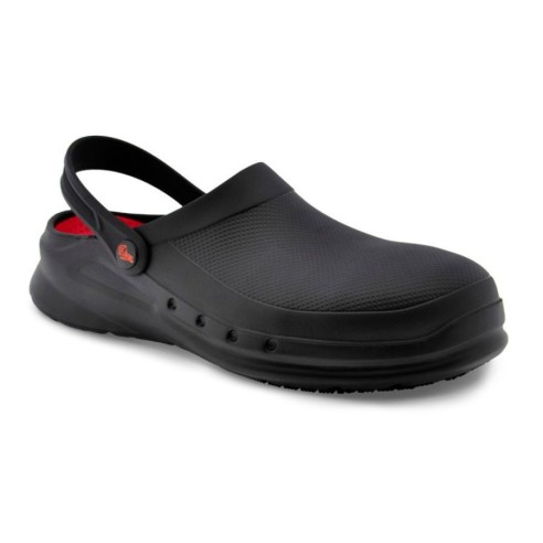 Sabot de sécurité ultra-léger avec embout composite, fabriqué en EVA antibactérien, sans latex, anatomique et lavable. Semelle antidérapante résistante à la graisse et à l'huile, idéale pour les environnements exigeants. Certifié EN-ISO-20345:2022.