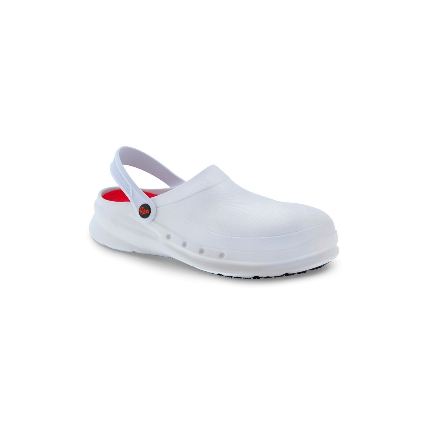 Sabot de sécurité ultra-léger avec embout composite, fabriqué en EVA antibactérien, sans latex, anatomique et lavable. Semelle antidérapante résistante à la graisse et à l'huile, idéale pour les environnements exigeants. Certifié EN-ISO-20345:2022.