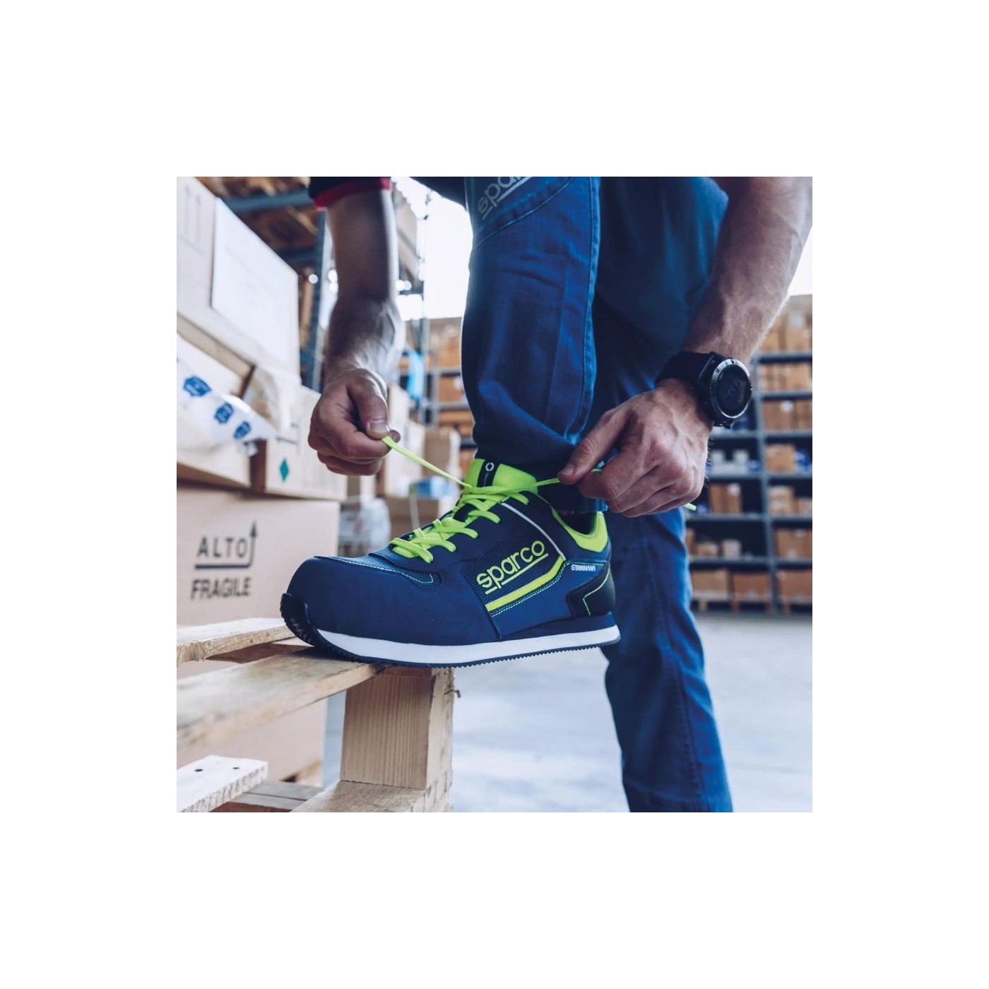 Chaussures de sécurité Sparco à l'image moderne et sportive avec un style sneaker très léger, avec la possibilité de plusieurs coloris.