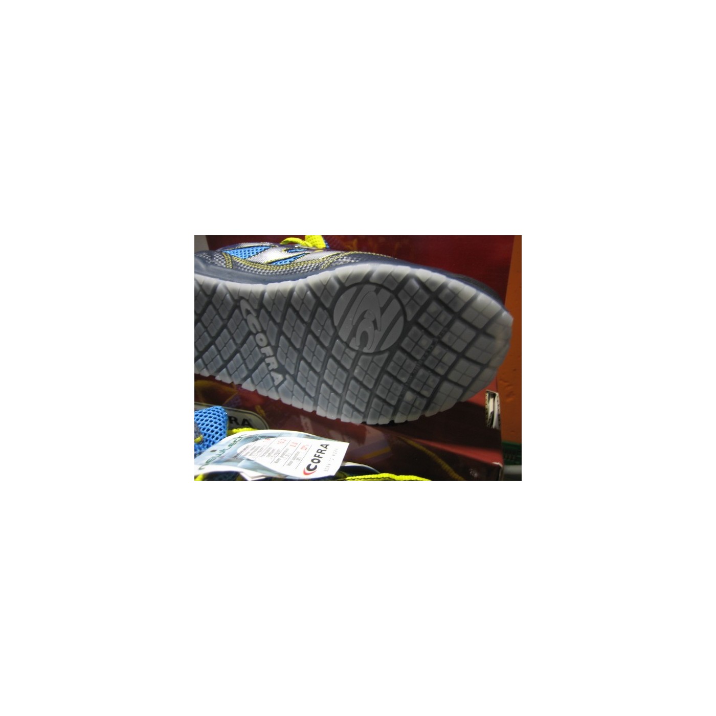 SEMELLE DE PROPRETE: COFRA SOFT, anatomique, antistatique, perforée, en polyuréthane parfumé, souple et confortable; le dessin de la couche inférieure garantit l'absorption de l'énergie d'impact (shock absorber) et une élevée résistance au glissement; la couche supérieure absorbe la sueur et laisse le pied toujours sec