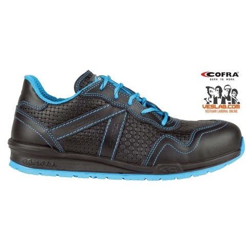 SEMELLE DE PROPRETE: COFRA SOFT, anatomique, antistatique, perforée, en polyuréthane parfumé, souple et confortable; le dessin de la couche inférieure garantit l'absorption de l'énergie d'impact (shock absorber) et une élevée résistance au glissement; la couche supérieure absorbe la sueur et laisse le pied toujours sec
