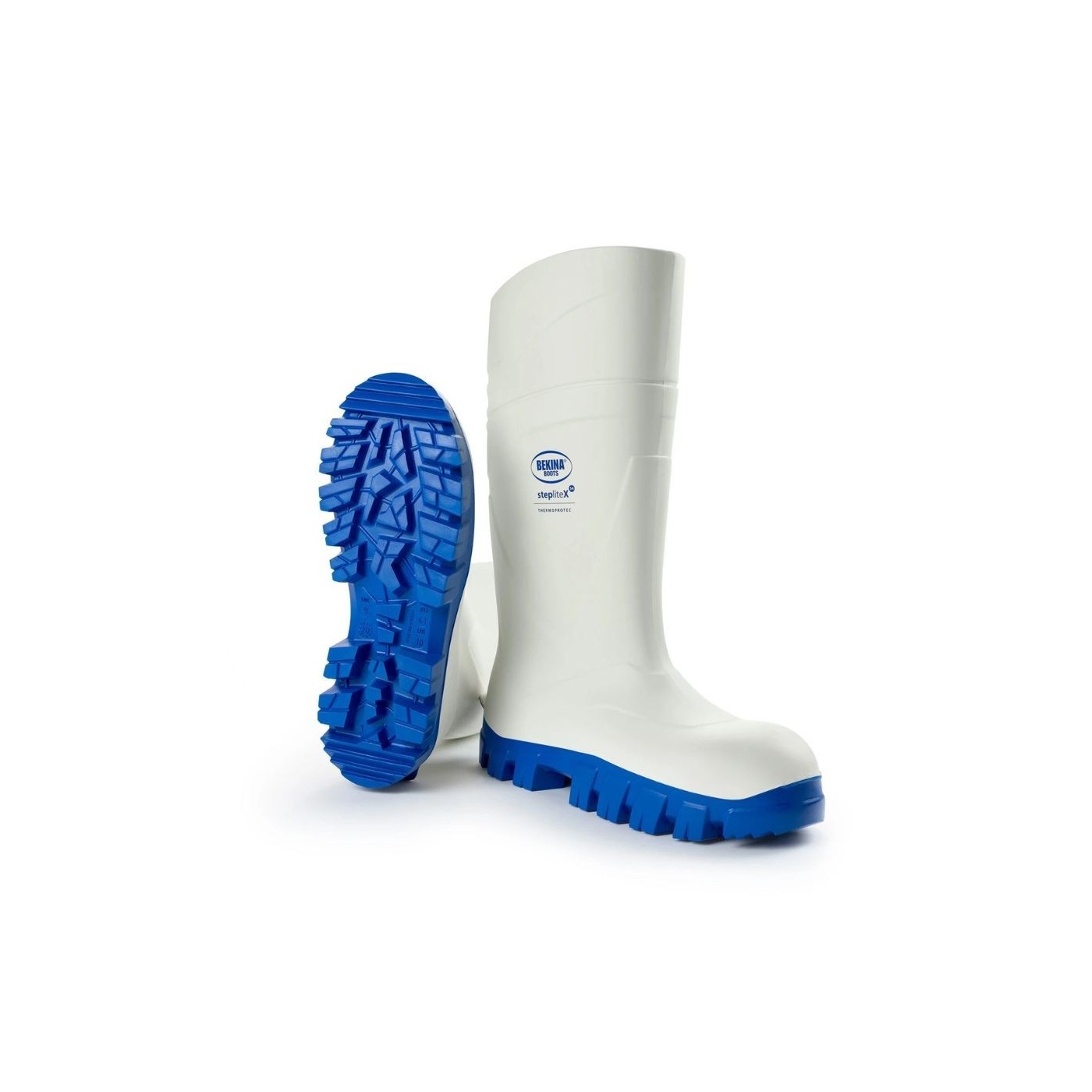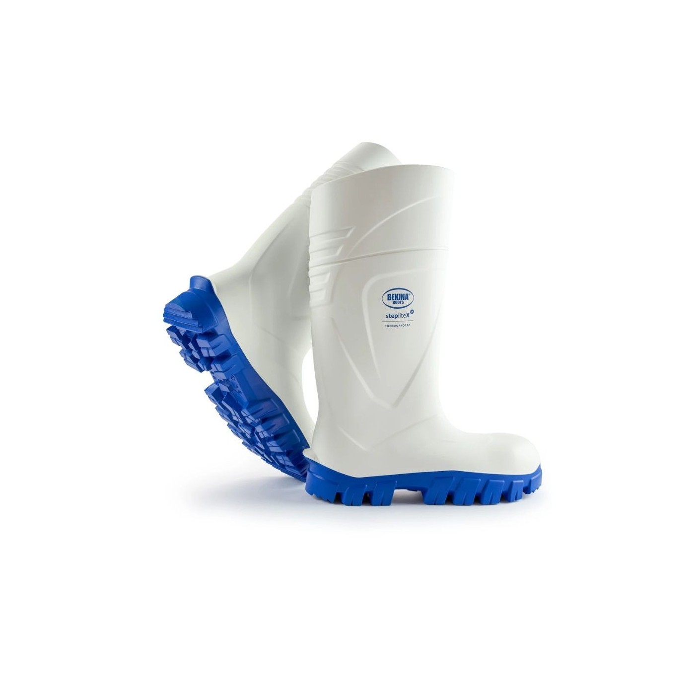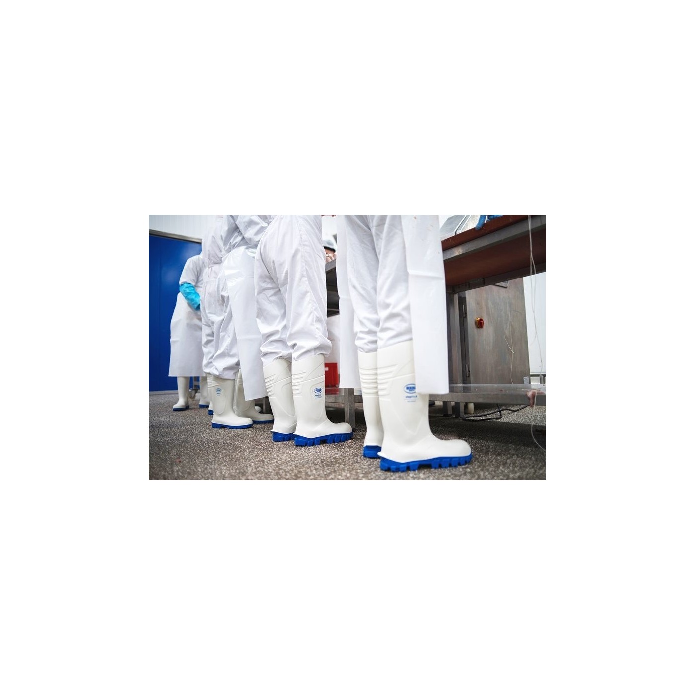 Le StepliteX ThermoProtec garde le professionnel de l'industrie alimentaire en sécurité, au sec et au chaud car ils sont résistants à la chaleur. De cette façon, vous n'aurez jamais froid aux pieds lorsque vous devrez effectuer des activités à l'intérieur de chambres froides ou d'entrepôts congelés. Cette botte de sécurité alimentaire blanche est dotée d'un embout de protection non métallique qui empêche les interférences avec les détecteurs de métaux. Il garantit une résistance maximale au glissement grâce à sa semelle certifiée SRC, empêchant les glissades et les trébuchements.