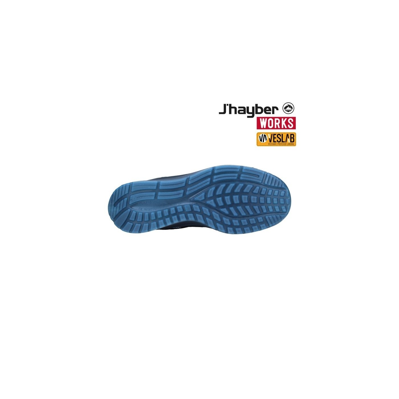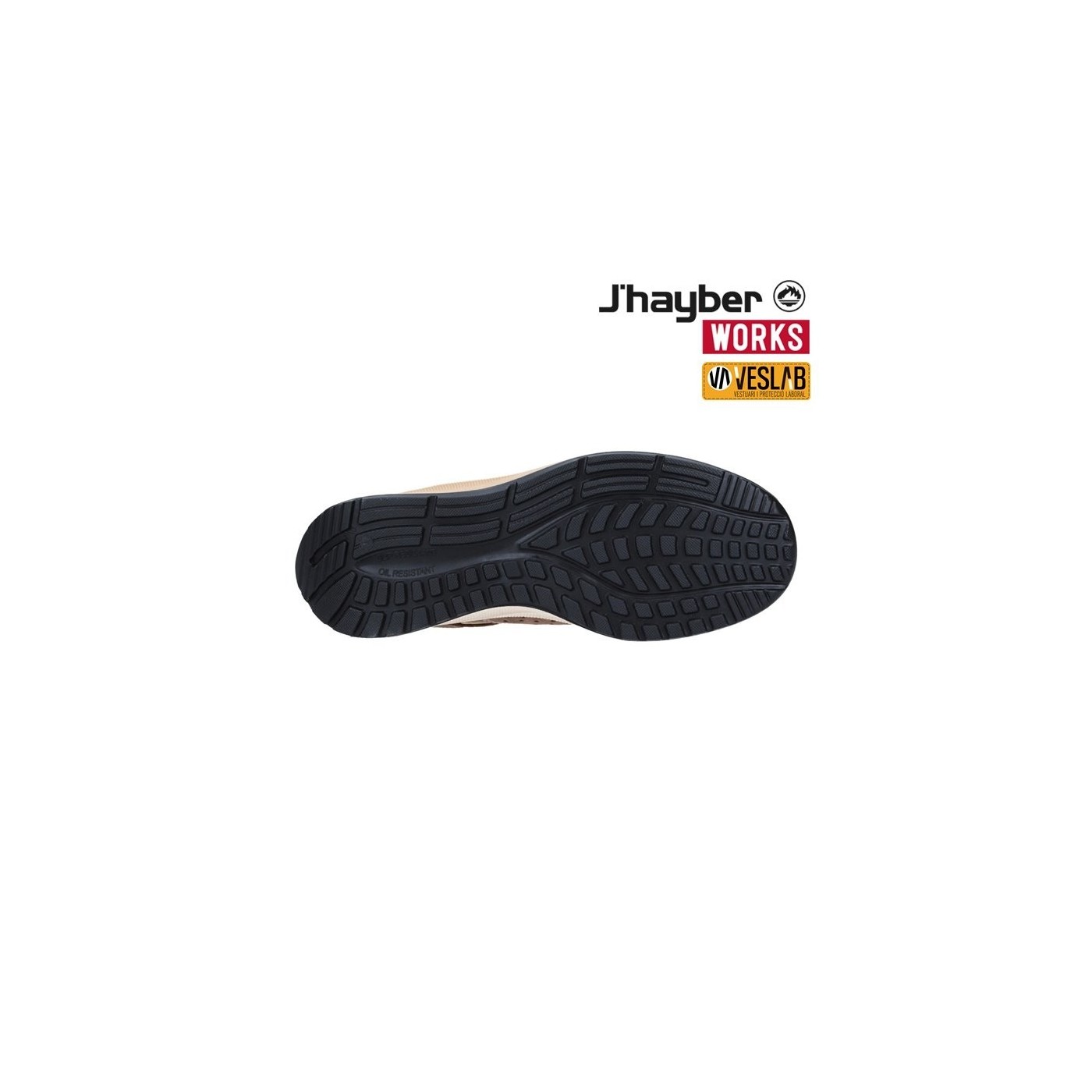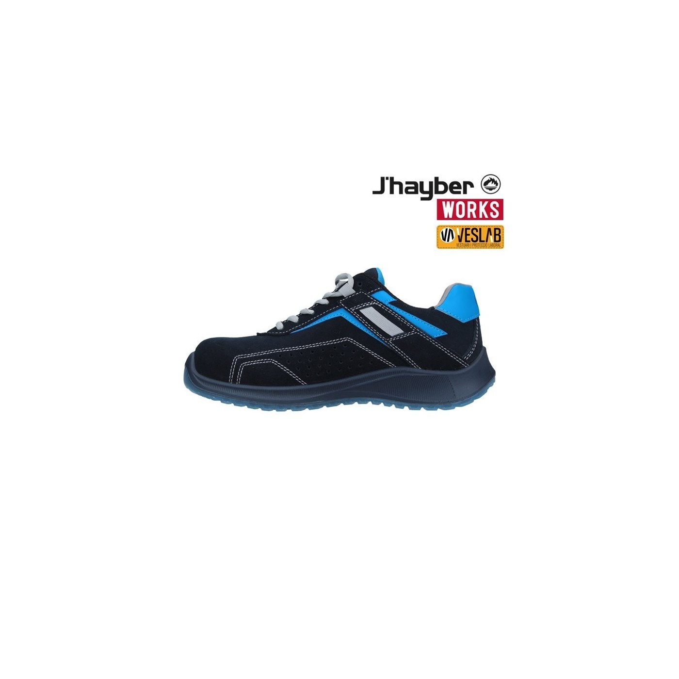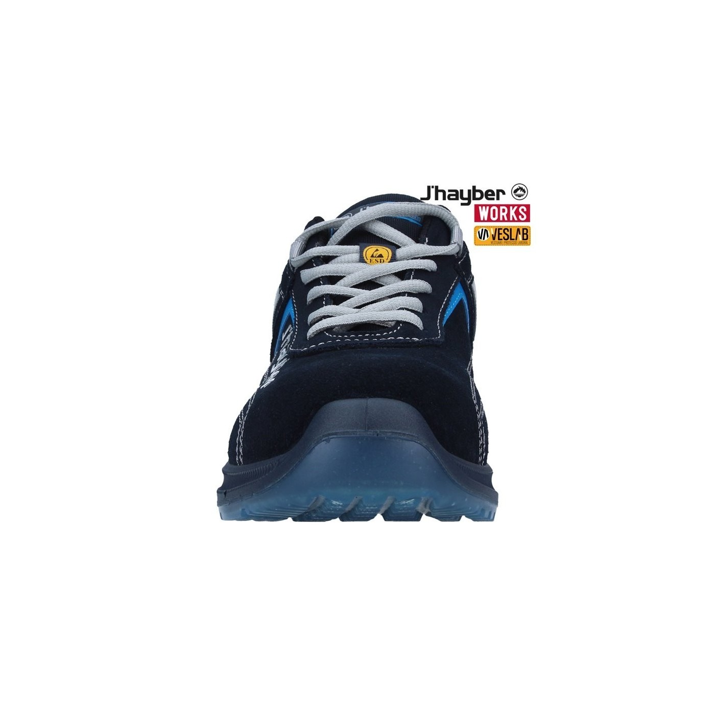 Sa tige est en daim perforé et la doublure intérieure est en tissu très résistant, ce qui en fait une chaussure très respirante. La languette rembourrée protège le cou-de-pied des chocs et des rayures, l'embout de sécurité est en fibre de verre résistant à 200 joules et sa semelle intérieure est en tissu anti-perforation.