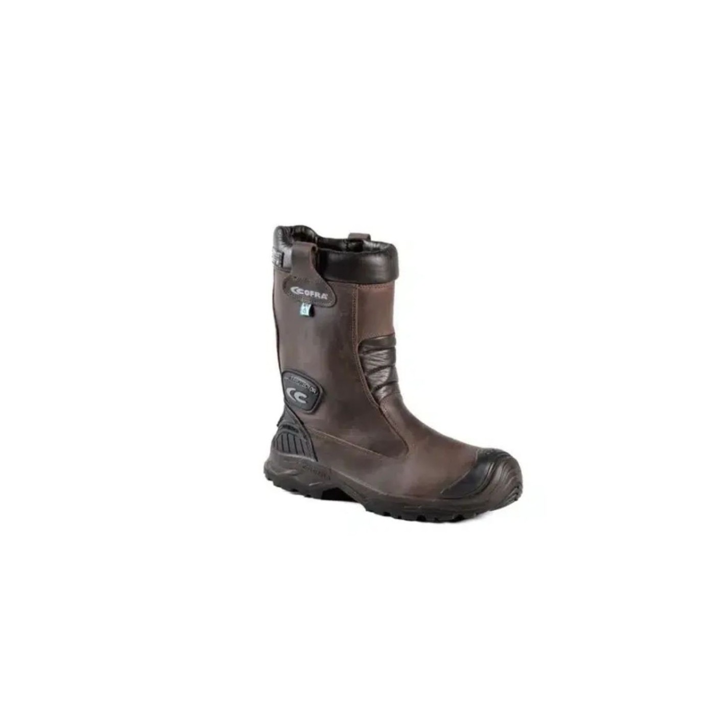 La chaussure WOERDEN S7S HI CI AN SC SR HRO FO LG de la marque COFRA est une chaussure de sécurité conforme à la norme EN ISO 20345:2022. Elle présente des caractéristiques telles qu'une tige en nubuck hydrofuge, une doublure intérieure respirante et absorbante, une semelle intérieure anatomique isolante pour les basses températures et une semelle résistante aux hautes et basses températures. De plus, il dispose d'un embout résistant en fibre de verre, d'une semelle intérieure anti-perforation non métallique et d'une protection supplémentaire au niveau des orteils, du talon et de la cheville.
