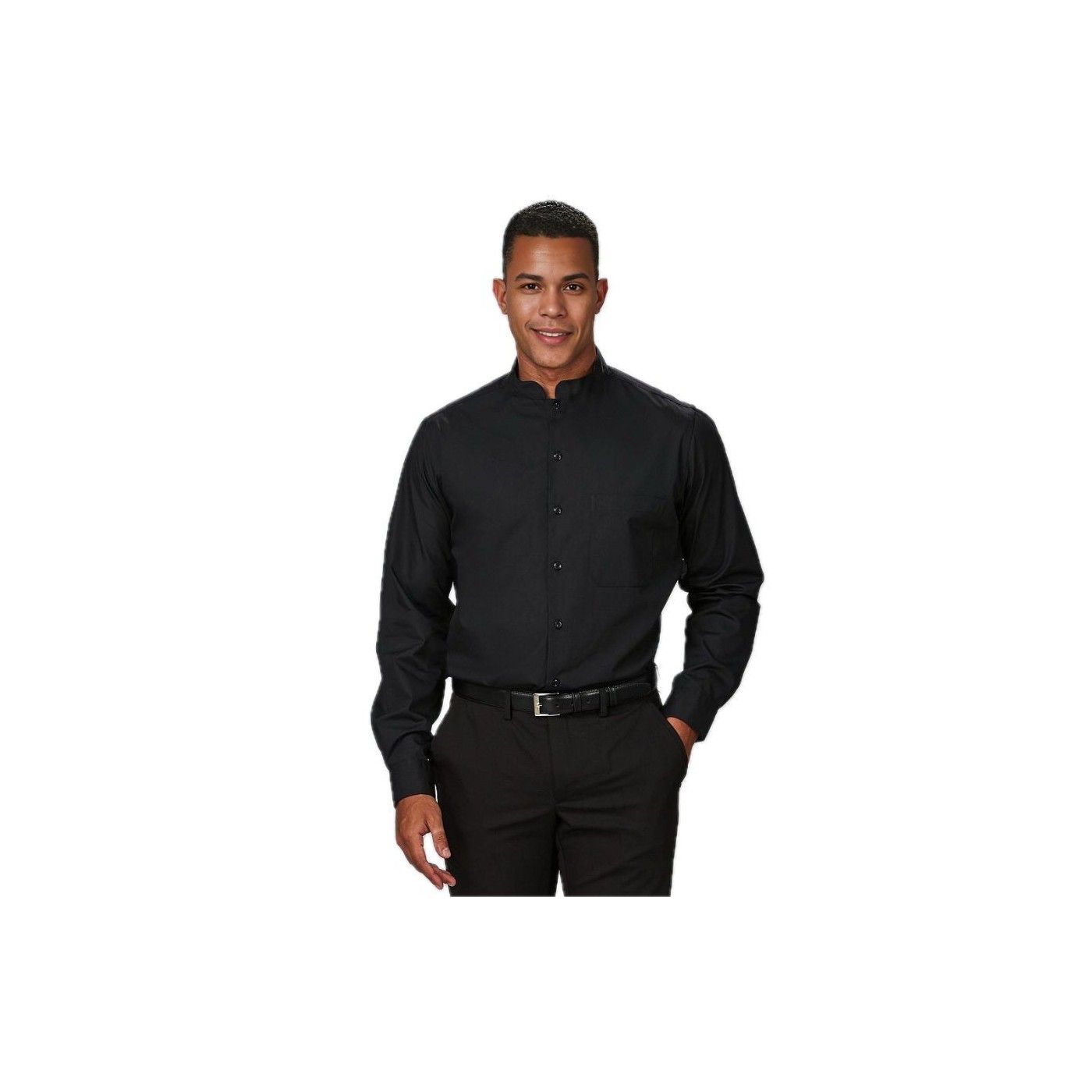 Chemise de serveur à manches longues et col mao de Gary's : Élégance et confort avec un design de col mao, des manches longues et des poignets boutonnés. Ajustement parfait grâce à des pinces stratégiques. Disponible en blanc et noir pour un look professionnel et sophistiqué. Idéale pour l'hôtellerie et la restauration.