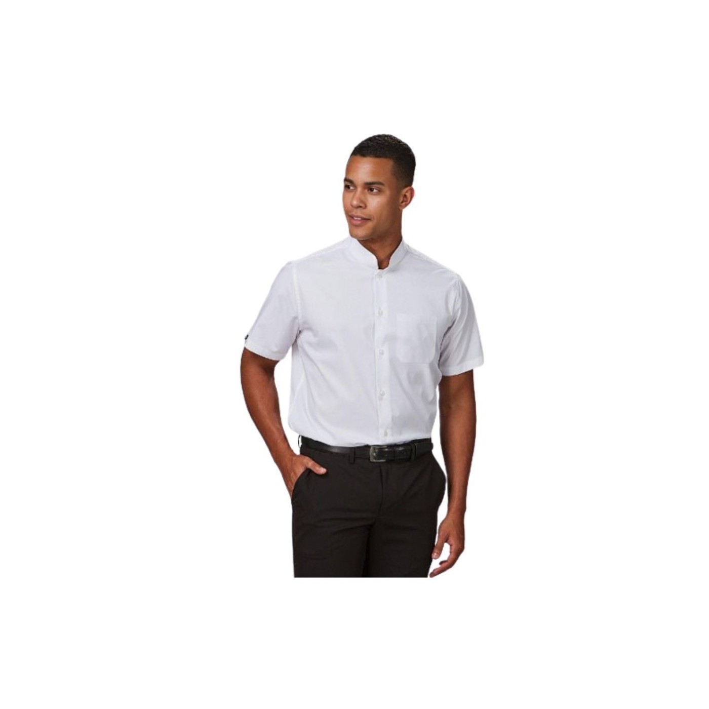 CHEMISE HOMME M/C "RED LINE" de Gary's : Élégante et fonctionnelle, avec des manches courtes et un col mao. Disponible en blanc et noir, elle comprend une poche poitrine et un empiècement au dos. Parfaite pour l'hôtellerie et les affaires, elle garantit confort et durabilité.