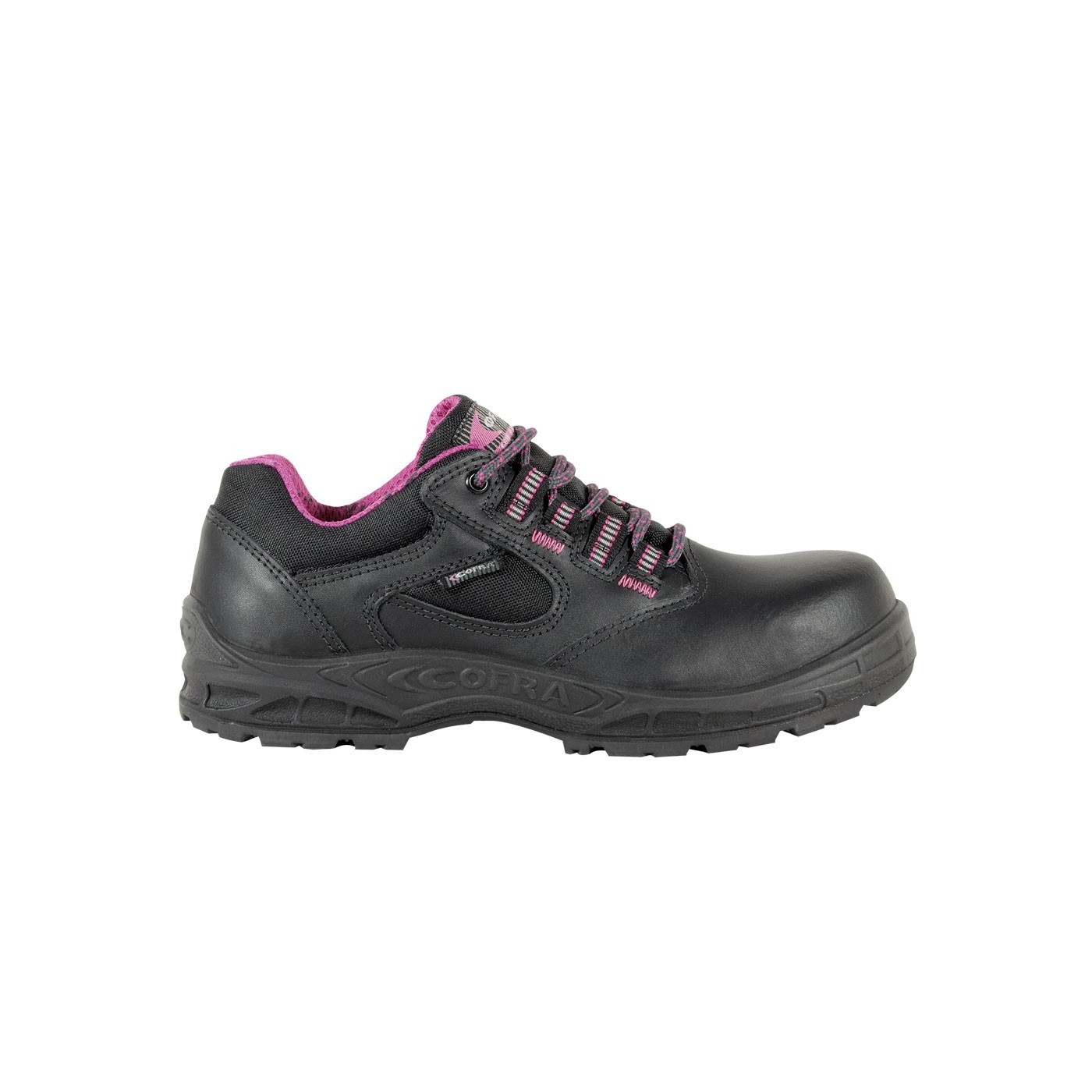 La chaussure de sécurité de travail pour femme Cofra Delia SRC est une élégante chaussure à lacets, en cuir et tissu grain qui offre le plus haut niveau de protection et de confort. Cette chaussure convient à tous les environnements de travail. Le Cofra Delia S3 SRC a un revêtement antibactérien interne. Absorbe et libère l'humidité, laissant vos pieds au sec et confortables.