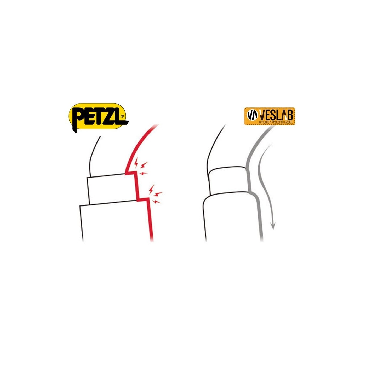 - Forme ovale et symétrique permettant de positionner, de façon optimale, les appareils à section large de type poulie, bloqueur et antichute mobile.