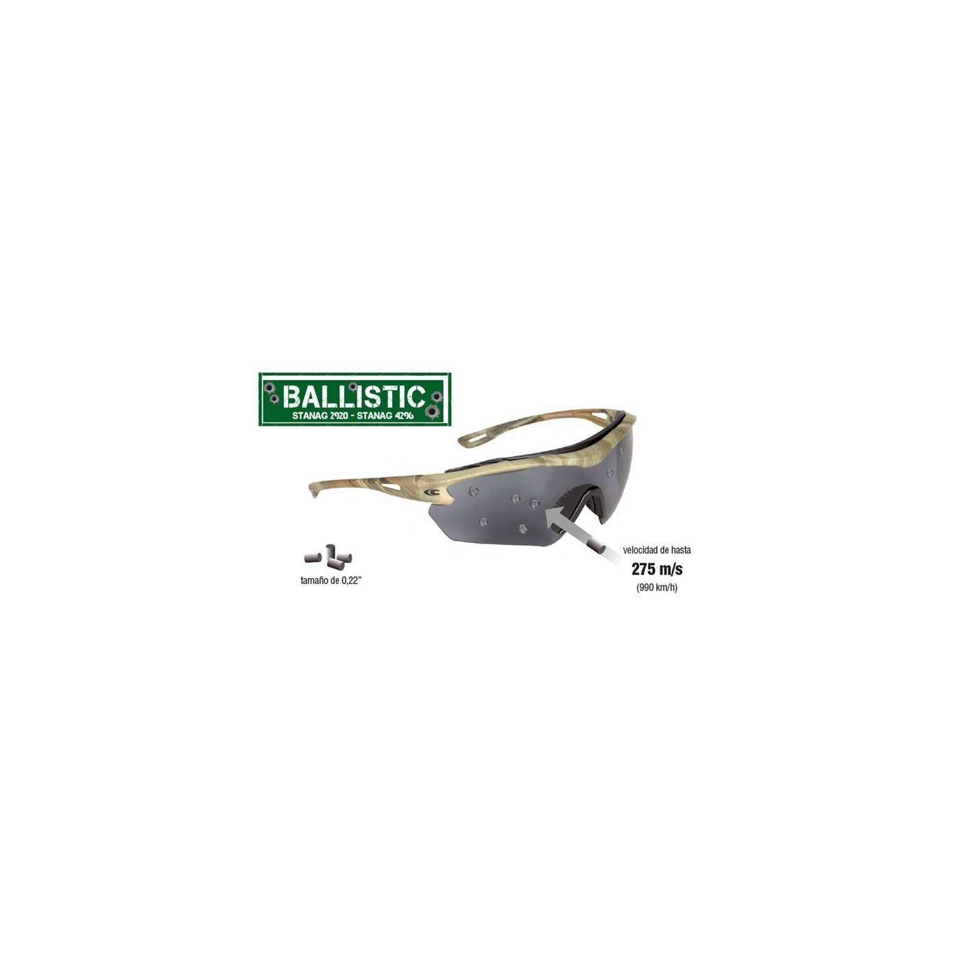 Les normes STANAG 2920 et STANAG 4296 sont des normes de référence pour l’évaluation de la résistance balistique reconnues dans l’ensemble des pays membres de l’OTAN. Par rapport à la norme européenne EN 166 qui détermine la résistance au choc d’une bille d’acier avec diamètre de 6 mm et masse de 0,86 g lancées à une vitesse de 45m/s, la norme STANAG 4296 garantit la résistance balistique définie par le STANAG 2920 qui détermine la résistance balistique aux impacts d’un cylindre en acier équivalent à un calibre de 0,22’’ qui peut aller jusqu’à plus de 275 m/s soit 990 km/h. La norme STANAG 2920 ne définit pas de seuil minimal de protection comme l’EN 166, mais elle spécifie une vitesse V50 où un projectile a 50% de chances de perforer l’oculaire. En plus, les lunettes conformes à la norme STANAG 4296 doivent satisfaire aussi une série d’exigences, comme par exemple: