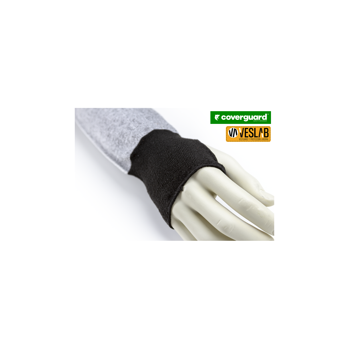 Manchette anti-coupure grise tricotée sans couture pour travaux de précision, en fibres HDPA, polyester, élasthanne, jauge 13, réglage par velcro sur la partie supérieure du bras, forme anatomique de la main en maille extra fine, avec trou pour le pouce, ambidextre Longueur : 450mm 1 pièce