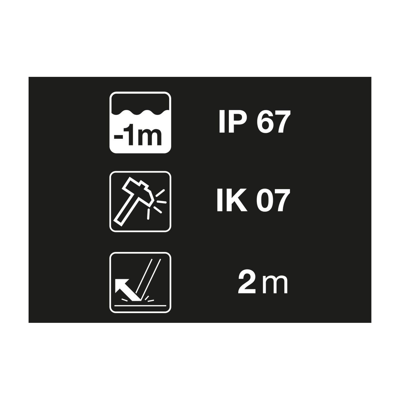 - Construction robuste : la lampe torche résiste aux chocs (IK07) et aux chutes (jusqu'à 2 mètres).