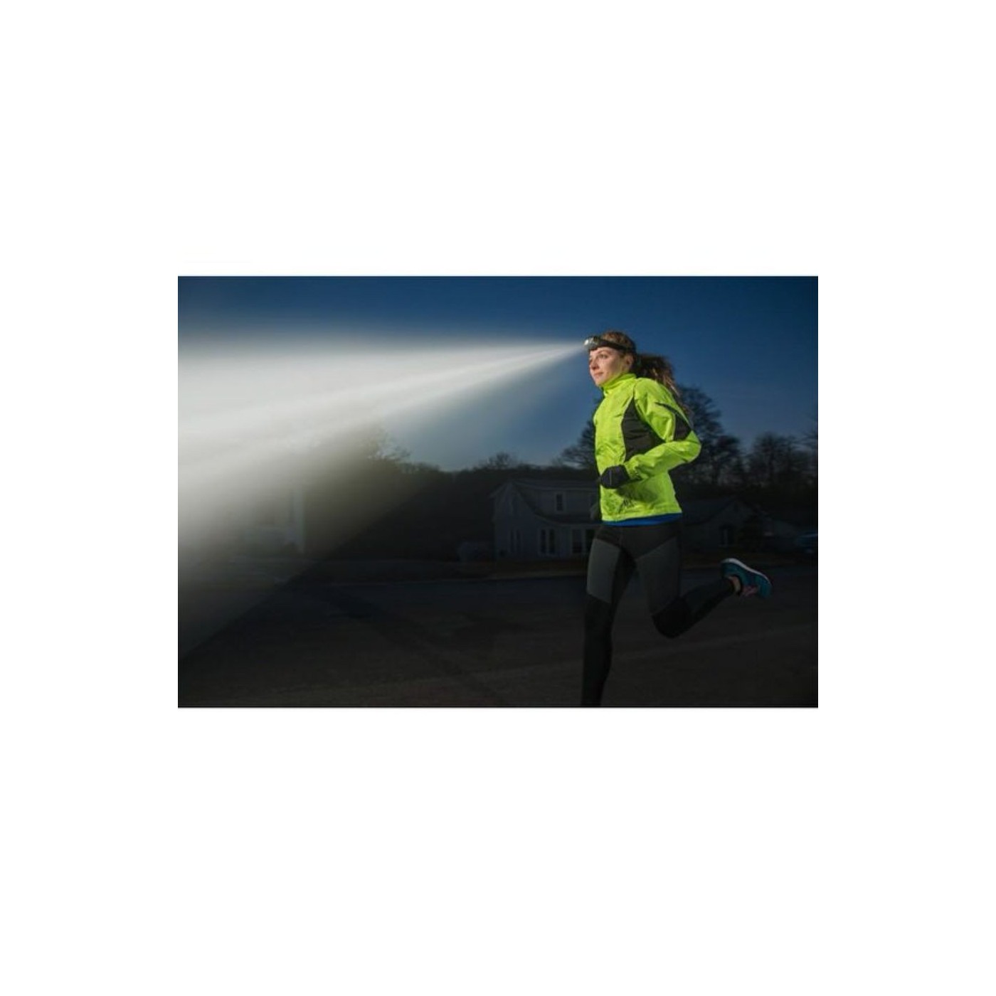 Quatre fonctions : faisceau avant (250 lumens), faisceau large (120 lumens), lumière rouge pour préserver la vision nocturne et feu arrière clignotant pour plus de sécurité.