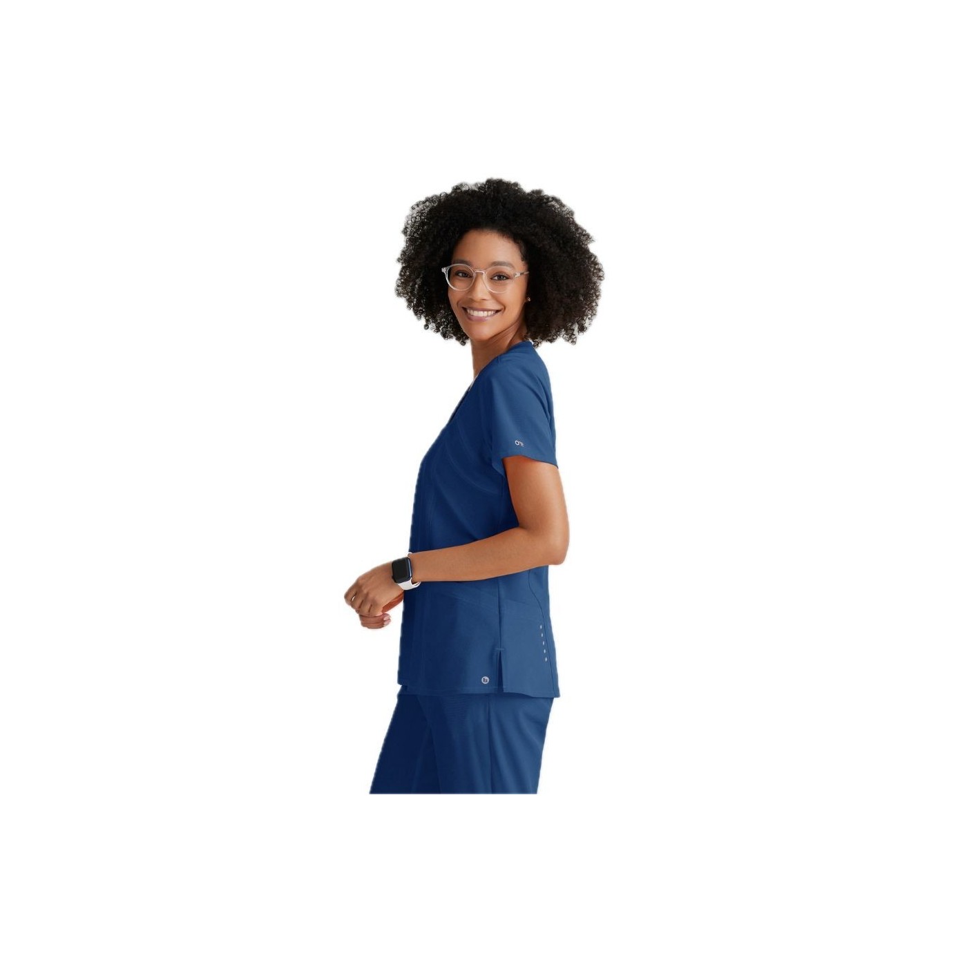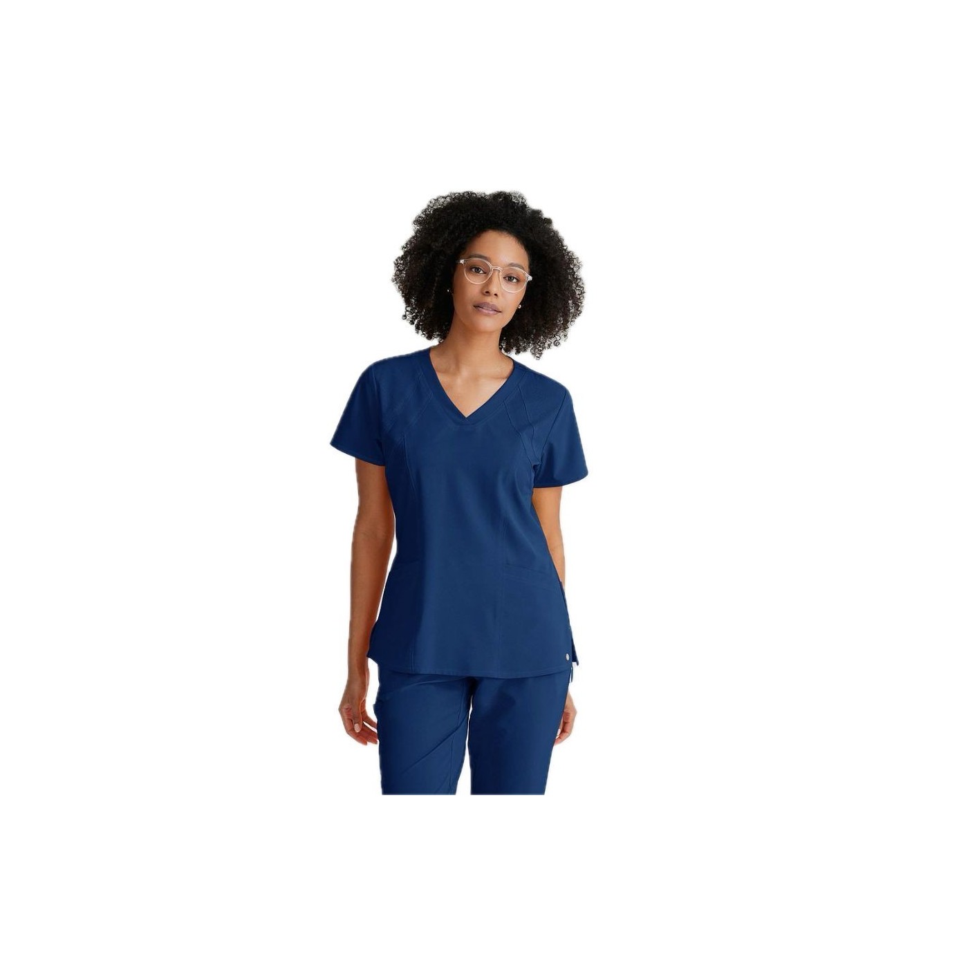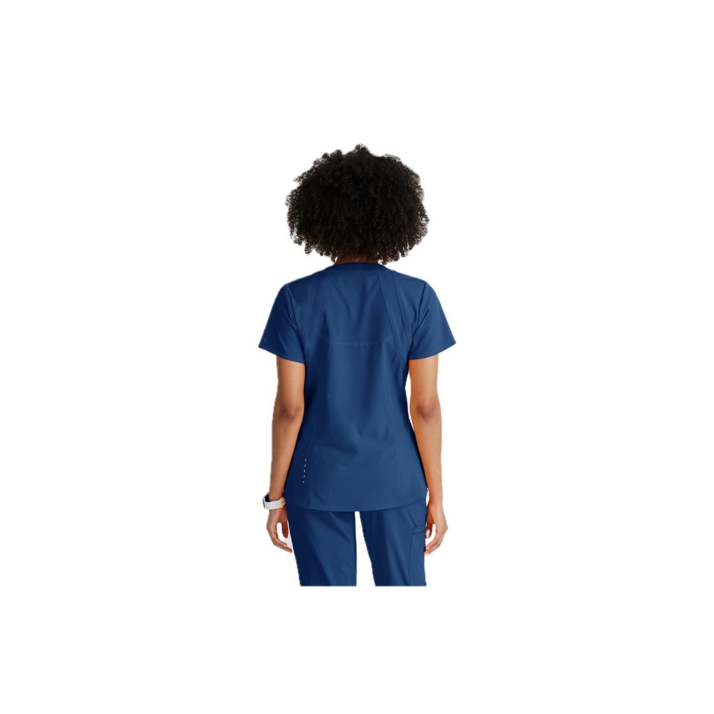 La blouse médicale RACER by BARCO offre confort grâce à son tissu extensible dans quatre directions, résistant aux plis et aux taches, avec une technologie antistatique et durable, fabriquée à partir de 5 bouteilles recyclées. Idéale pour les professionnels en mouvement.