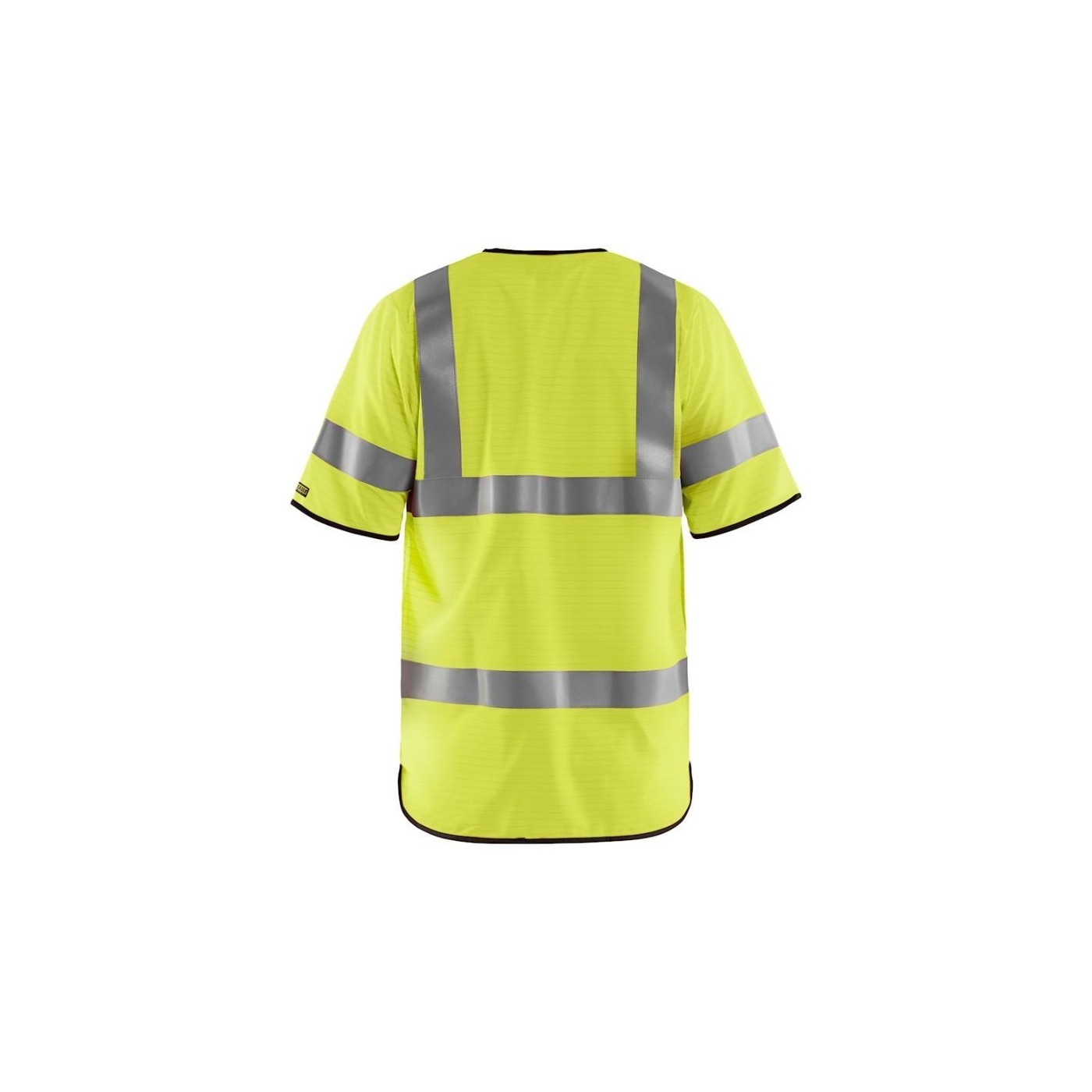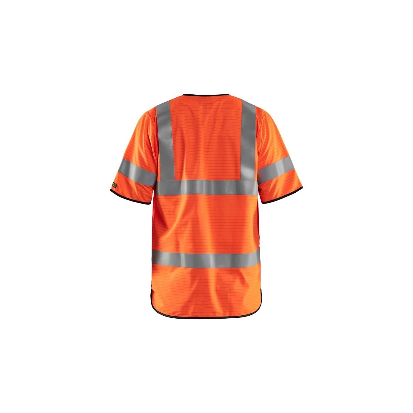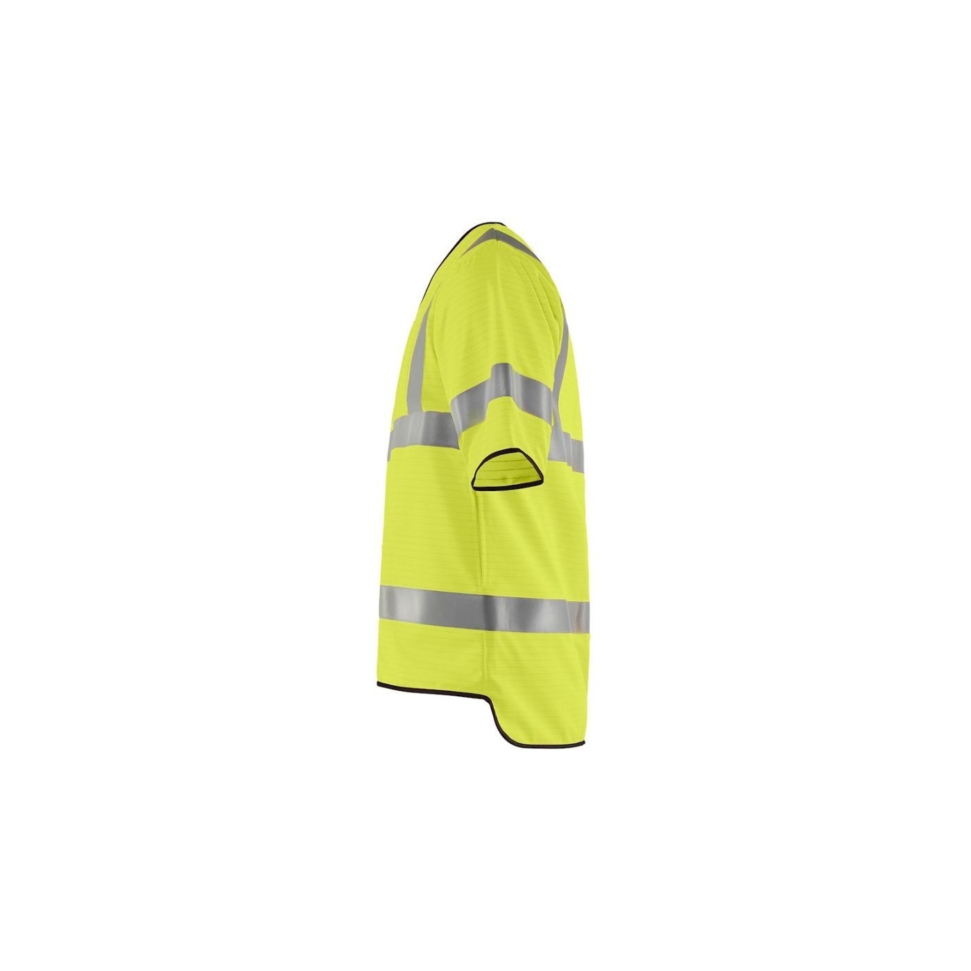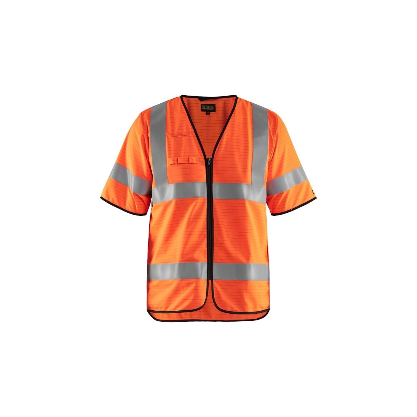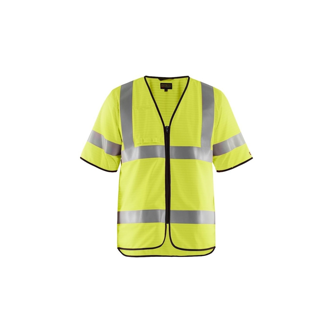 Gilet léger haute visibilité aux propriétés antistatiques. Ses bandes réfléchissantes sur tout le gilet, y compris les manches, garantissent que le porteur est visible de toutes les directions. Avec fermeture éclair frontale et ouvertures latérales pratiques qui permettent un accès direct aux vêtements et aux poches inférieures. Certifié selon EN 1149-5, EN ISO 14116, index 1. EN ISO 20471, Classe 3.