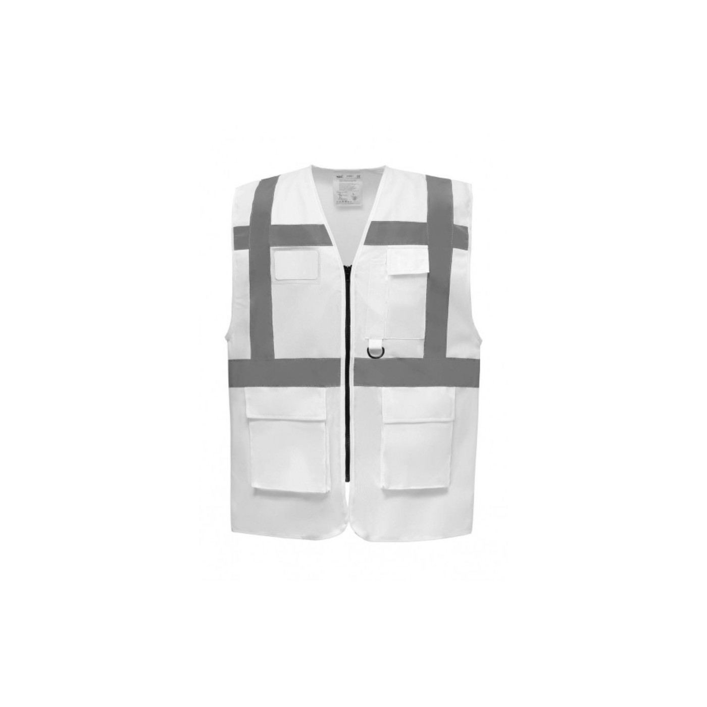 Gilet Réfléchissant Multipoche avec bandes réfléchissantes, poches pour téléphone et clés, fermeture éclair frontale et conformité aux réglementations de sécurité EN ISO20471:2013. Restez visible et organisé en tout temps.