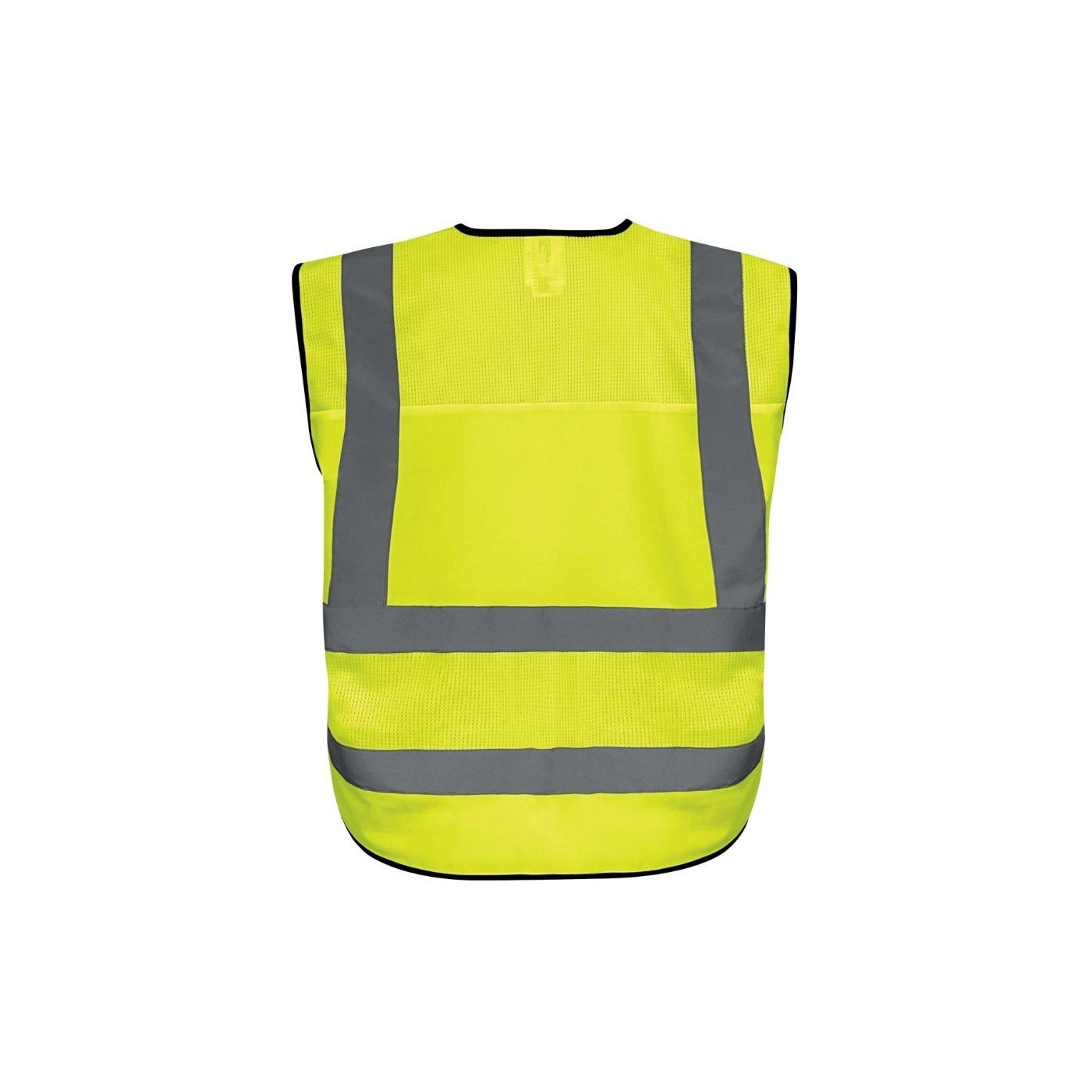 Le gilet multi-poches Gilpock HV Classe 2 allie haute visibilité, confort et durabilité. Confectionné en maille 100 % polyester recyclé de 125 g/m², avec col en V, fermeture éclair frontale et 4 poches (2 poches à soufflet avec rabat, 1 poche pour téléphone, 1 poche pour stylos). Idéal pour le travail en conditions de faible luminosité ou dans des environnements dangereux, offrant un séchage rapide et une excellente respirabilité.