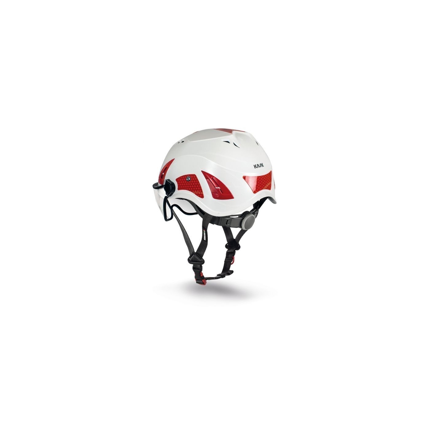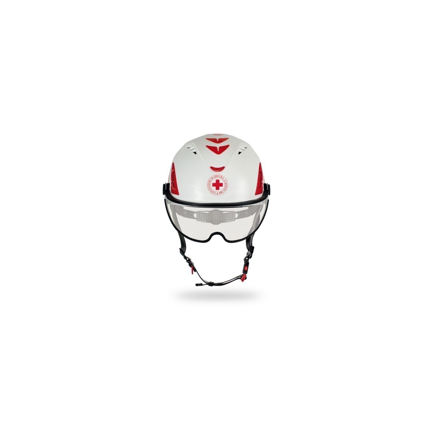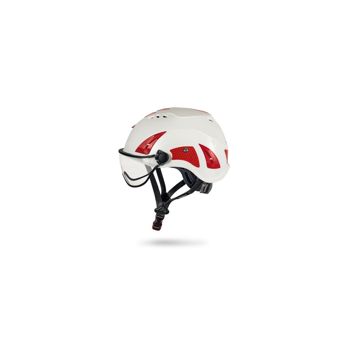 Equipé d'une boucle spéciale sur la jugulaire qui permet au casque d'être connecté au harnais.
