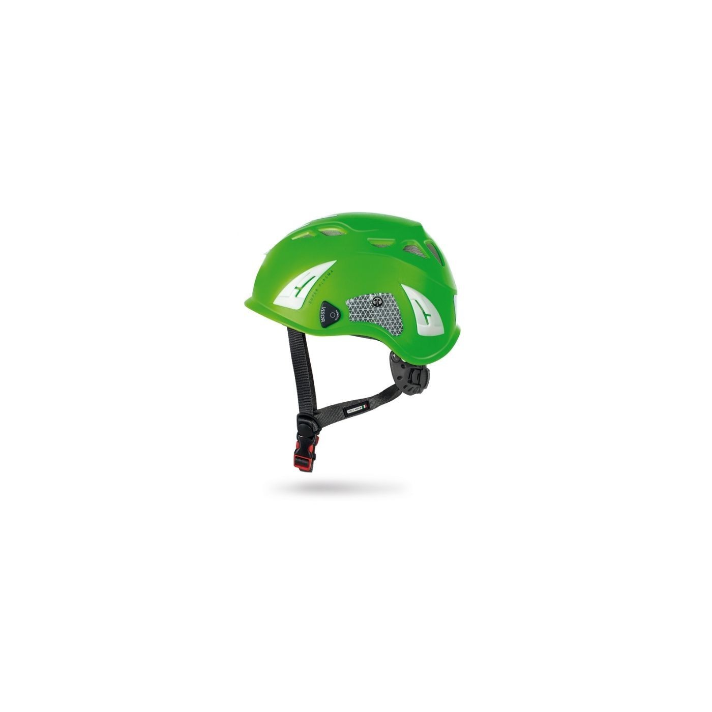 Equipé d'une boucle spéciale sur la jugulaire qui permet au casque d'être connecté au harnais.