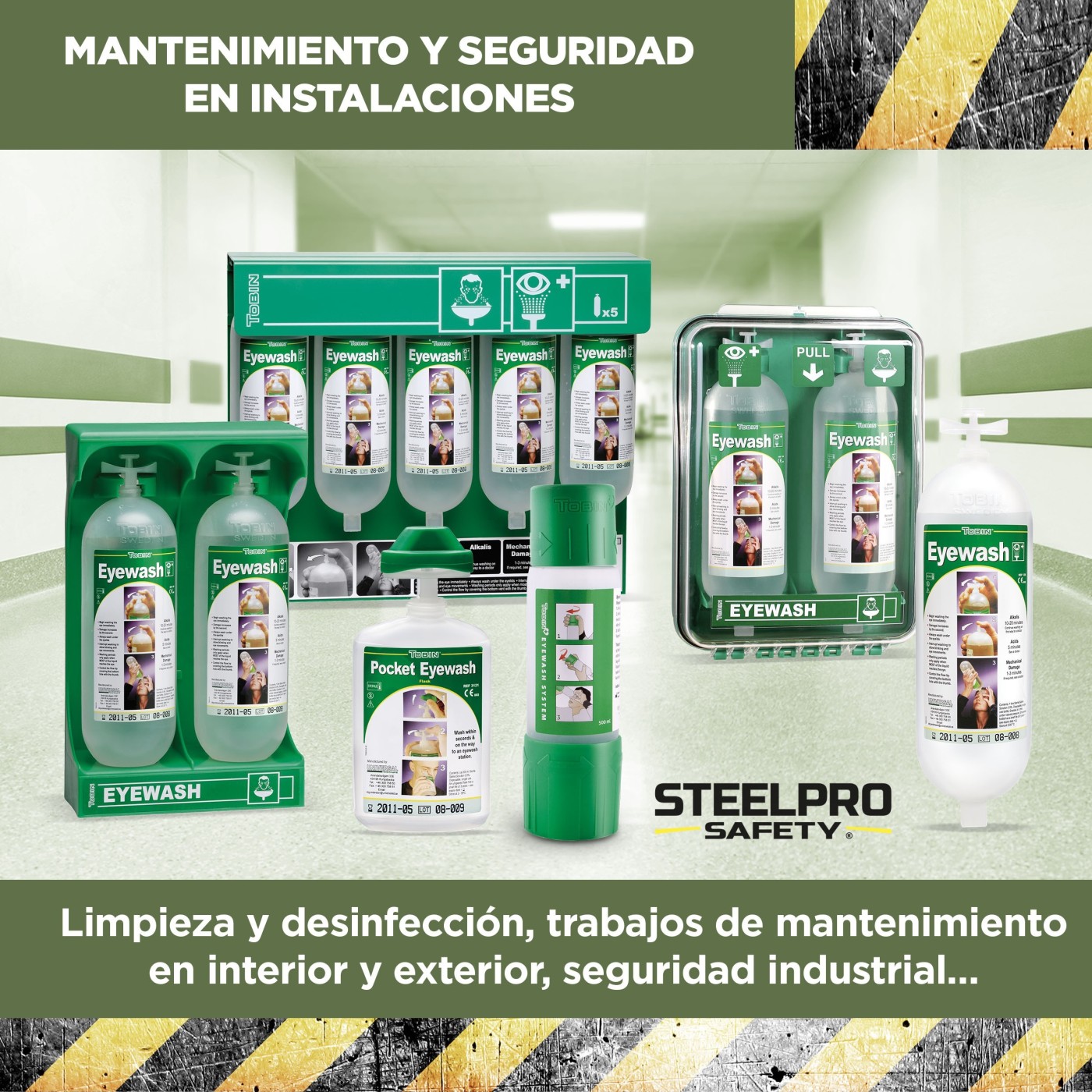 Il permet de démarrer le lavage des yeux immédiatement et dans des endroits où les douches oculaires ne sont pas facilement accessibles (nettoyage des véhicules, entretien à mobilité réduite ... etc.). Utilisation et application faciles en tournant les bouchons verts.