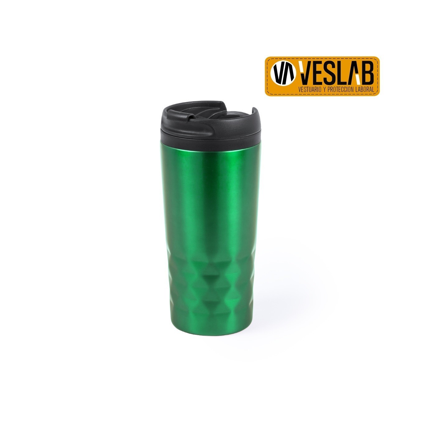 Gobelet en acier inoxydable de 310 ml avec un corps aux couleurs vives avec une finition brillante et un design en diamant. Avec bouchon doseur de sécurité et base rembourrée en mousse souple. Présenté en coffret individuel.