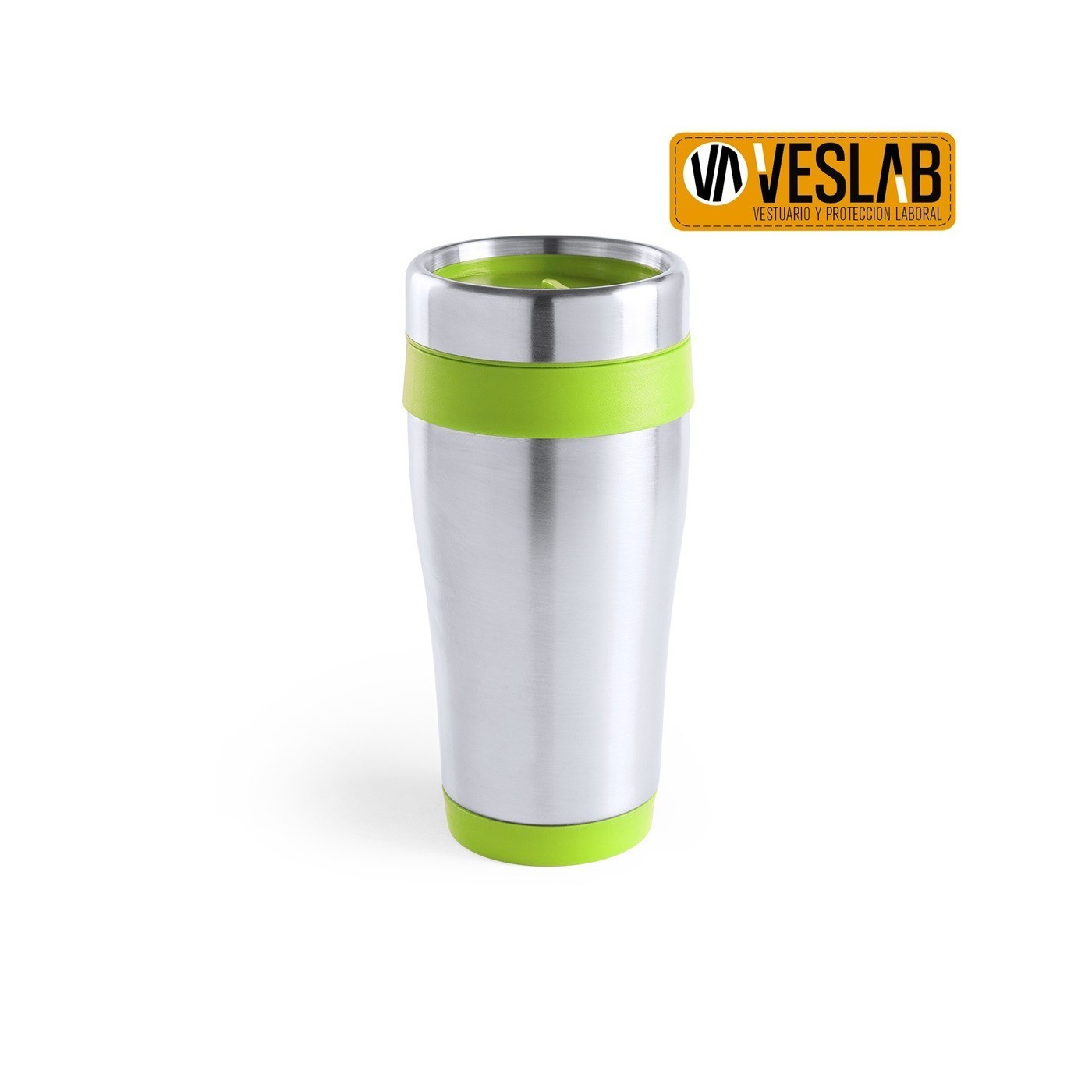 Gobelet en acier inoxydable de 450 ml avec un corps en finition brillante avec des accessoires assortis et de couleurs vives. Avec bouchon doseur de sécurité et présenté dans une jolie boîte design.