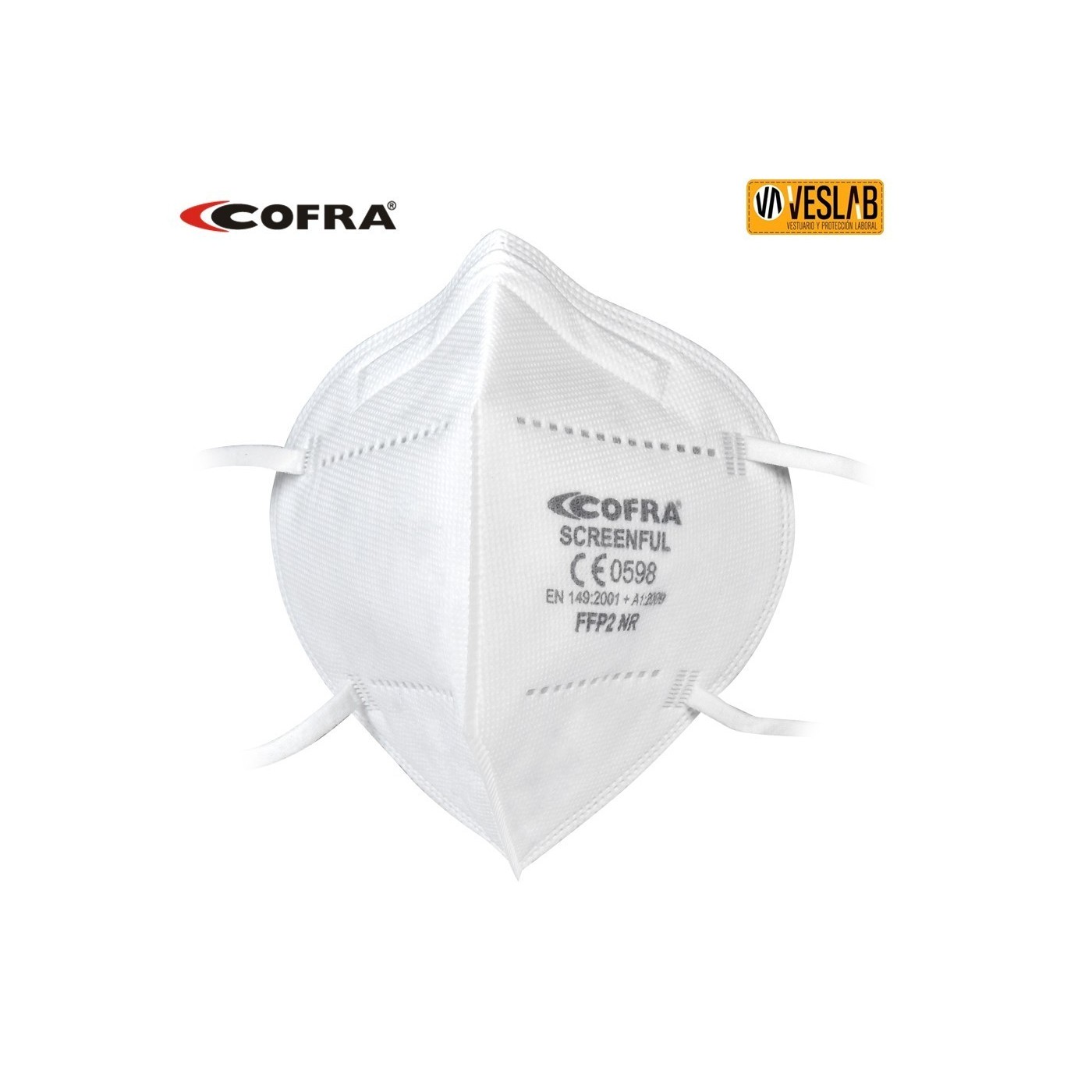 Le masque Screenful de COFRA est un demi-masque filtrant anti-poussière conçu pour offrir une protection respiratoire contre les particules nocives sur le lieu de travail. Avec une conception pliable verticalement et des élastiques d'oreilles soudés, il offre un confort et un large champ de vision. Il est conditionné dans des sachets hygiéniques de 5 pièces et s'adapte facilement à différentes tailles de visage. Conforme à la norme EN 149:2001+A1:2009 et offre une protection FFP2 NR sans valve.
