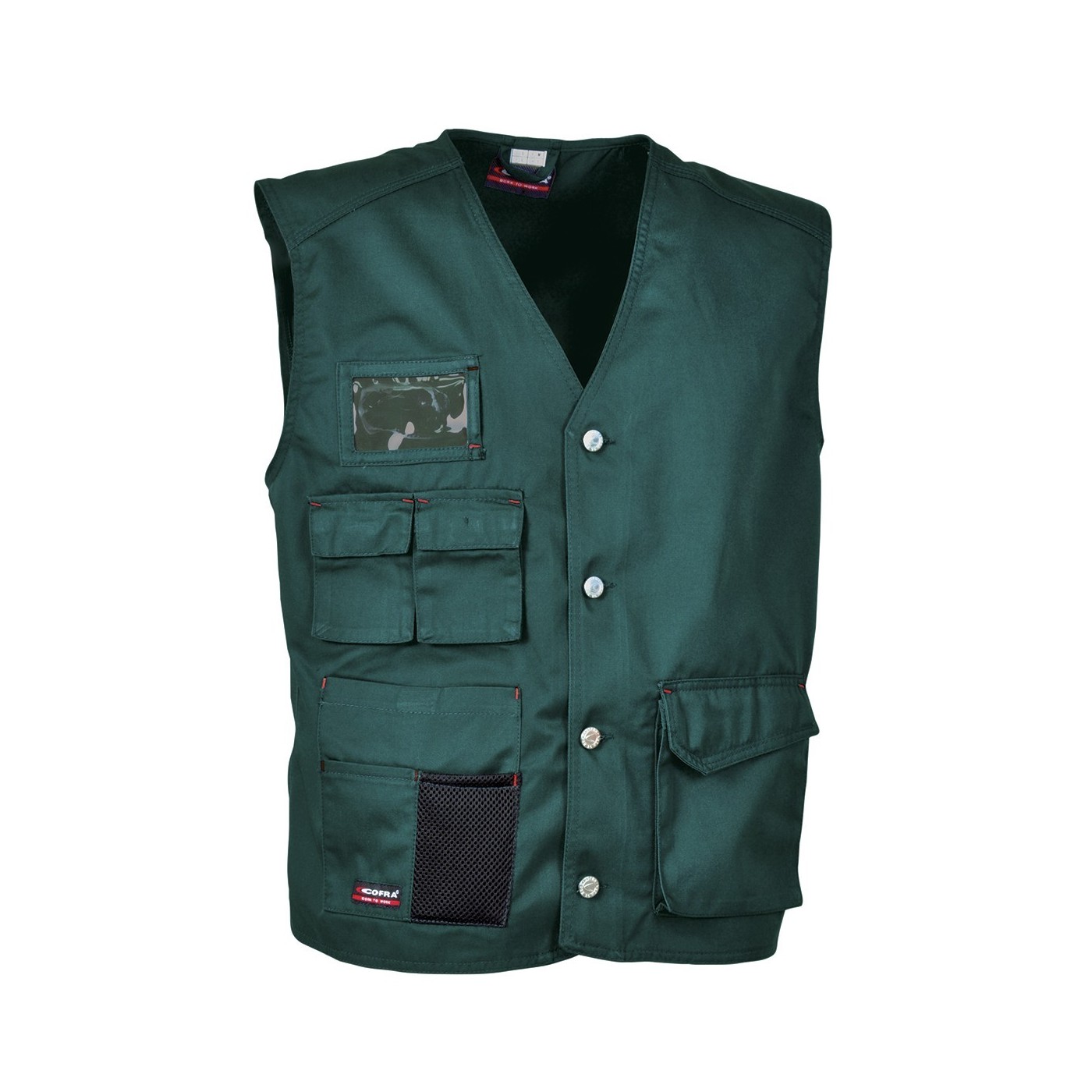 DESCRIPTION: 2 poches larges à l’avant avec velcro, 4 petite poches, fentes sur les côtés, poche porte-badge
