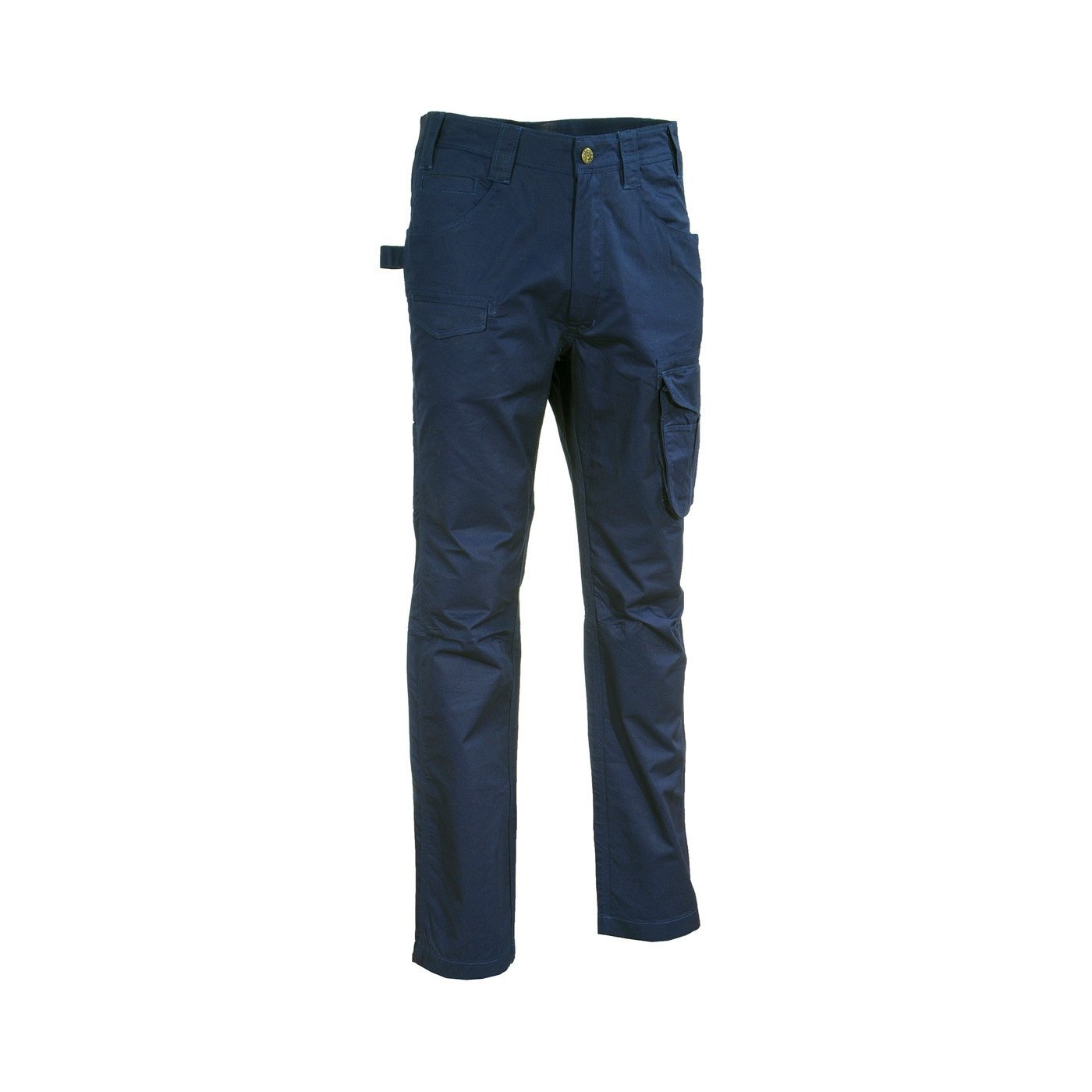 DESCRIPTION : 2 grandes poches avant, entrejambe renforcée, double poche arrière avec rabat, ceinture élastique, coupe ergonomique, poche latérale, poche à monnaie, poche à mètre, poche sur la jambe droite, fermeture éclair YKK®