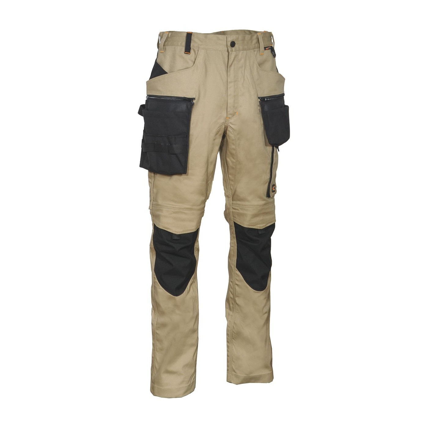 DESCRIPTION: 2 poches larges à l’avant, D-Ring, double poche à l'arrière avec velcro, élastique intérieur à la taille, entrejambe renforcé, inserts réfléchissantes 3M™ Scotchlite™ Reflective Material - 8725 Silver Fabric, jambes et genoux à coupe ergonomique, passant porte-marteau, poche latérale, poche pour mètre pliant, poche pour porte-monnaie, poches extérieures porte ongles en nylon, détachables avec le zip, poches pour les genouillères en nylon ajustables, tissu élastique
