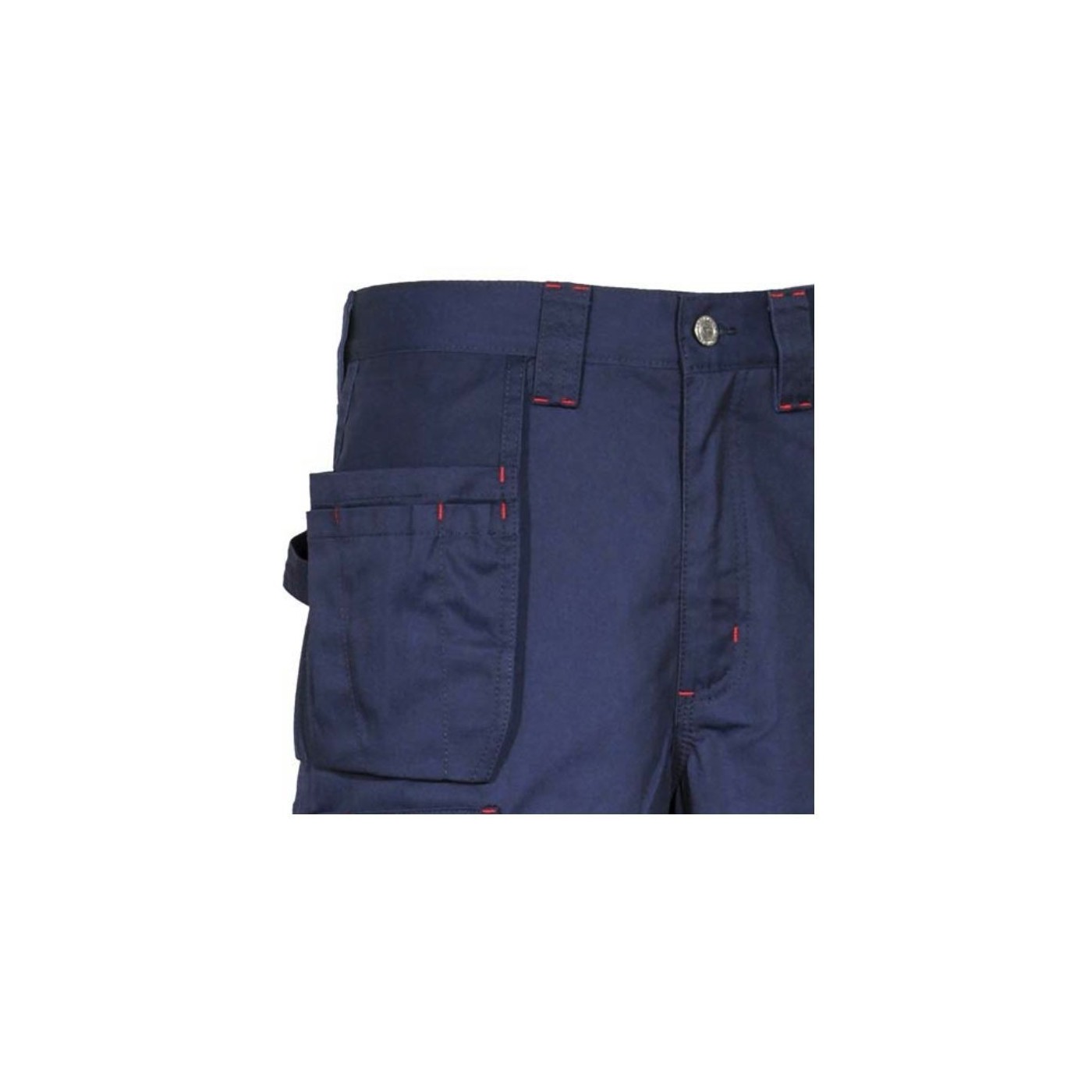 Caractéristiques principales: 1 poche arrière avec velcro, grandes poches avant, taille élastique, goupille marteau, poche de rangement avant, poche latérale, poche mètre, poches extérieures pour clous, poche pour genouillères avec position