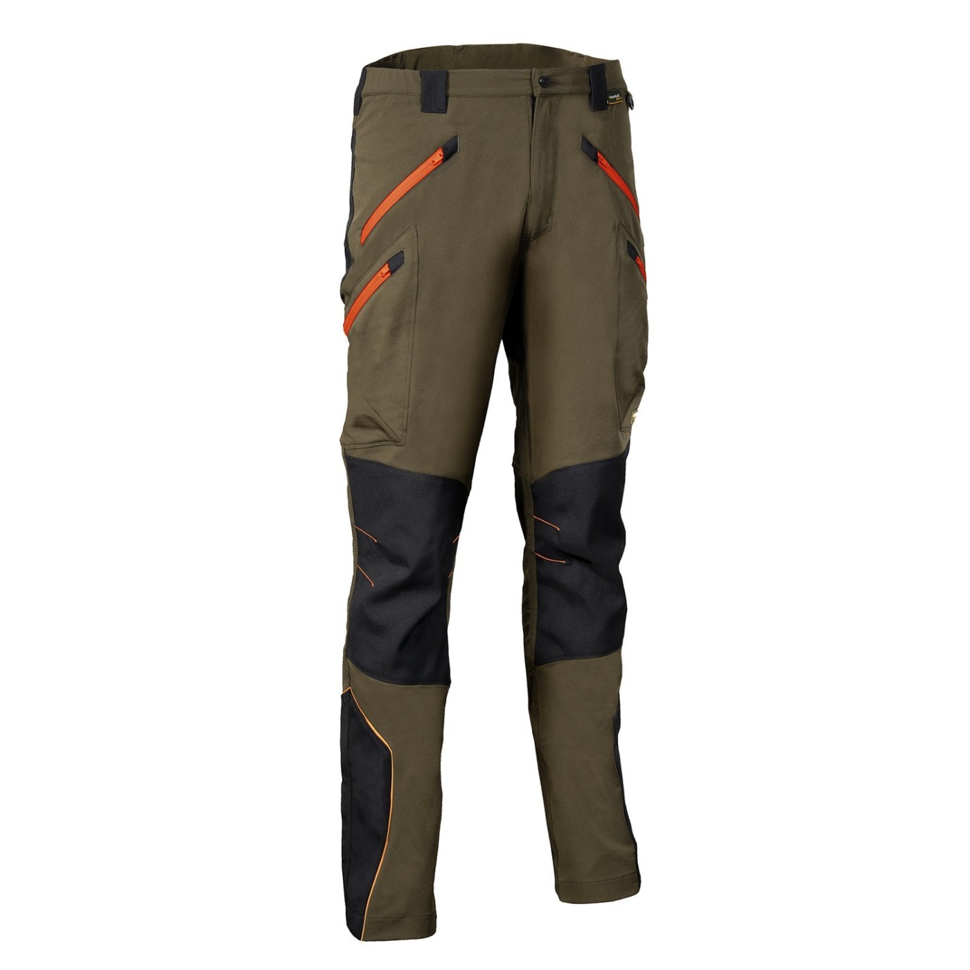 Pantalon de travail élastique inspiré du monde du trekking avec deux grandes poches avant, deux sur les côtés et deux à l'arrière, toutes avec fermeture éclair.