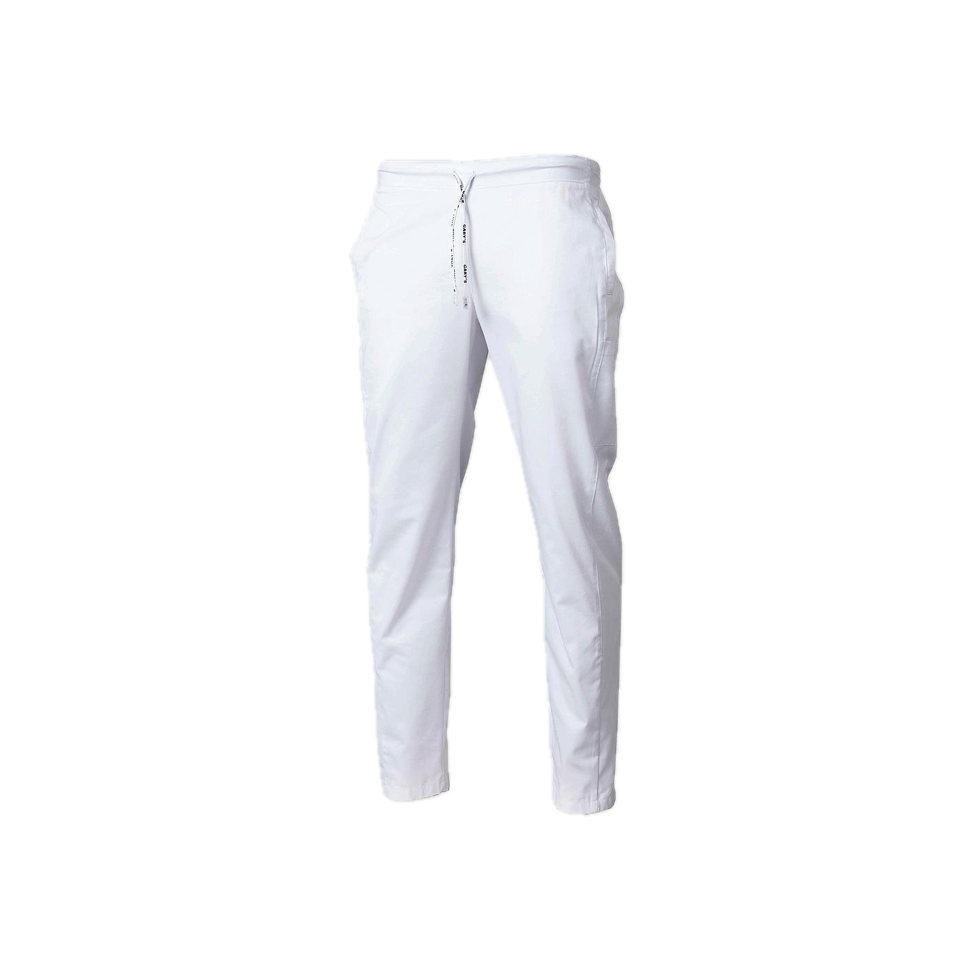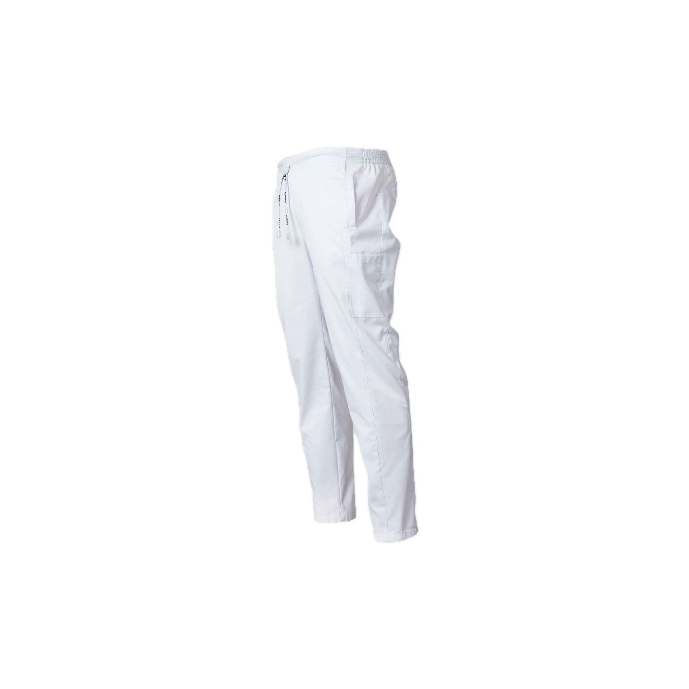 Pantalon Blanc Unisexe en Sergé frais, avec poches, coupe slim et ajustement élastique idéal pour le domaine médical, la médecine, l'hôtellerie, le nettoyage, la coiffure et l'esthétique.