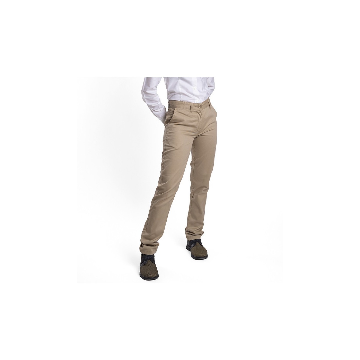 Il s'agit d'un pantalon pour femme coupe droite sans plis type chinois en tissu élastique et souple.
