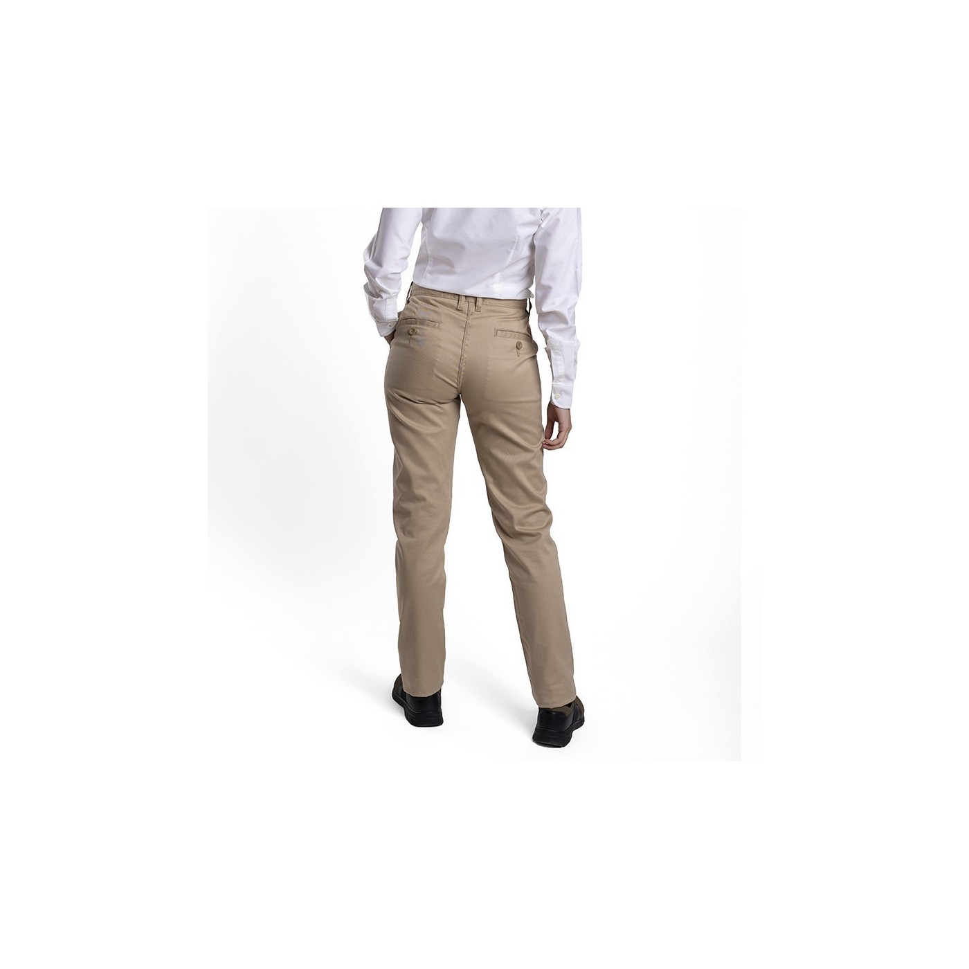 Coupe ajustée avec deux poches avant et 2 poches arrière avec bouton. Tissu sergé 97% coton 97% coton et 3% spandex. Poids 320 grammes.