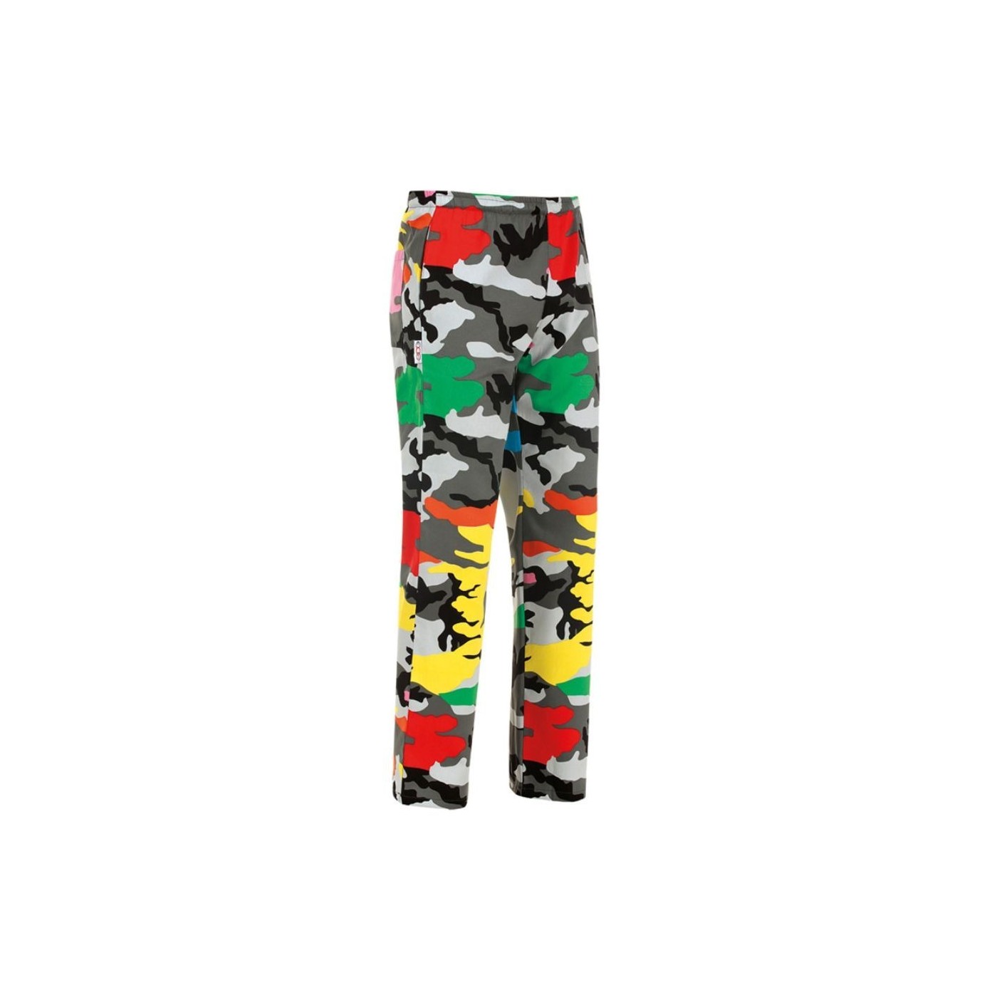 Pantalon de cuisine imprimé camouflage Coulisse avec une taille unisexe et une composition 100% Coton. Grammage : 190 grs/m2. Caoutchouc + Ruban