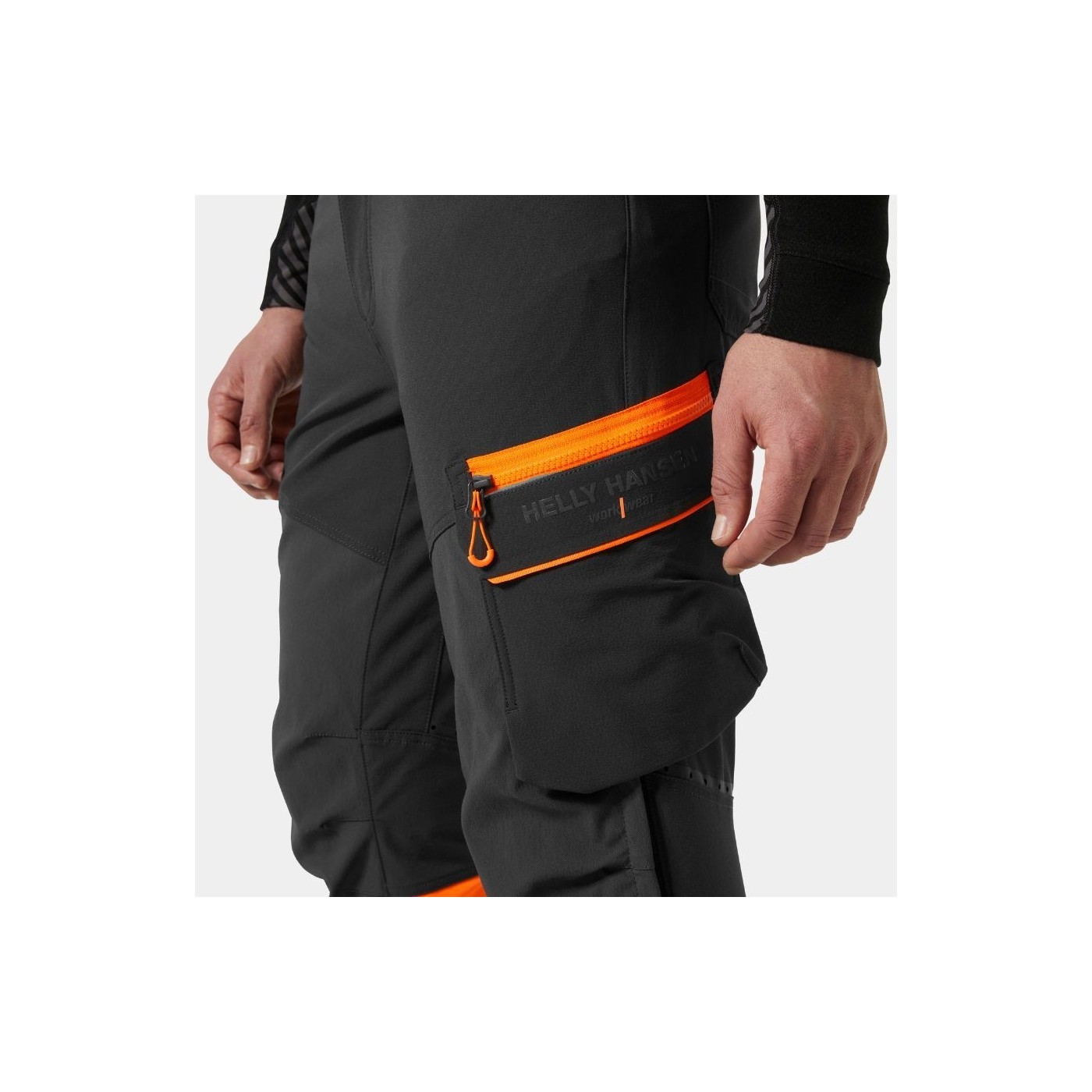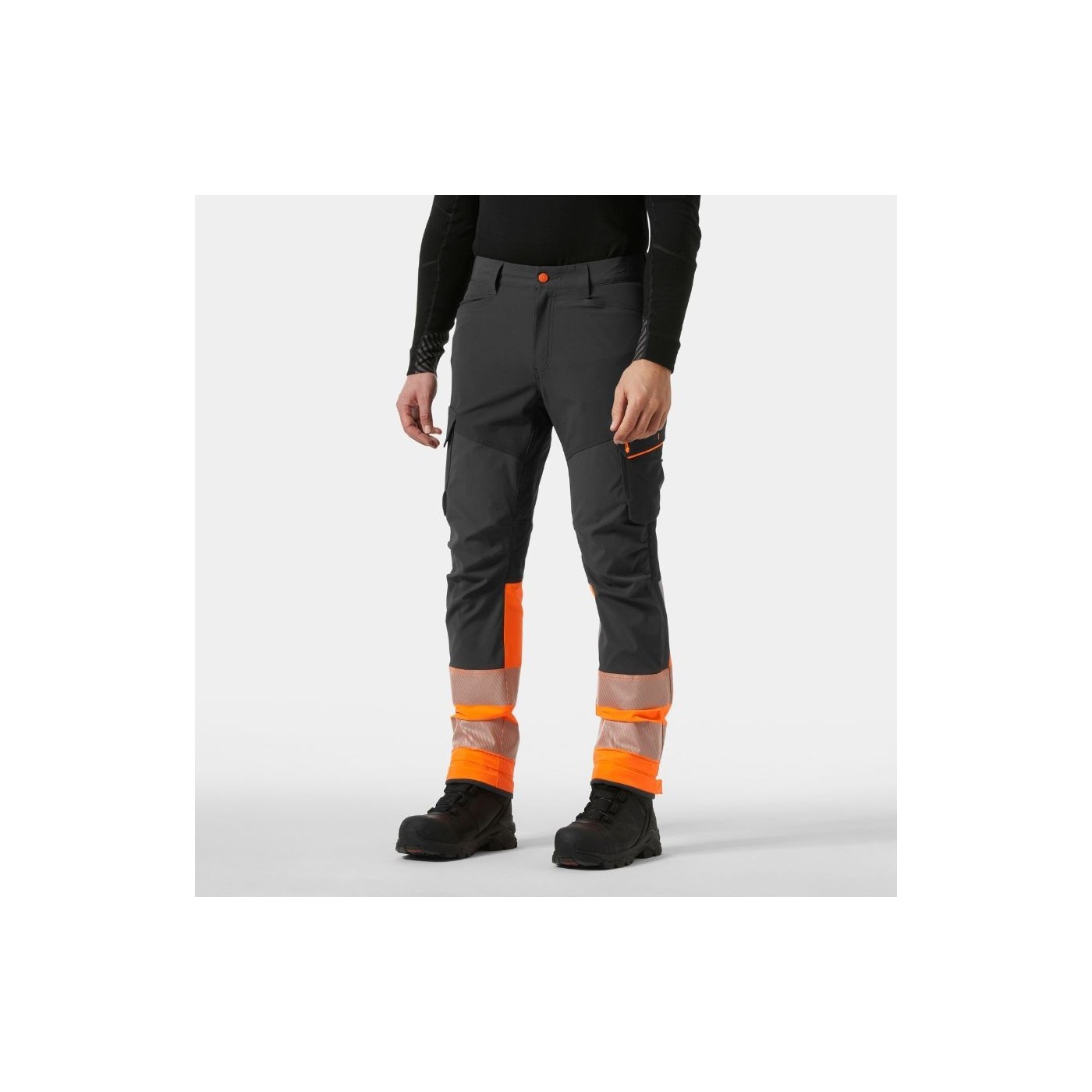 Pantalon de travail haute visibilité Helly Hansen avec poches suspendues amovibles en tissu extensible dans les 4 sens et une légèreté et une respirabilité maximales. Bandes réfléchissantes 3M