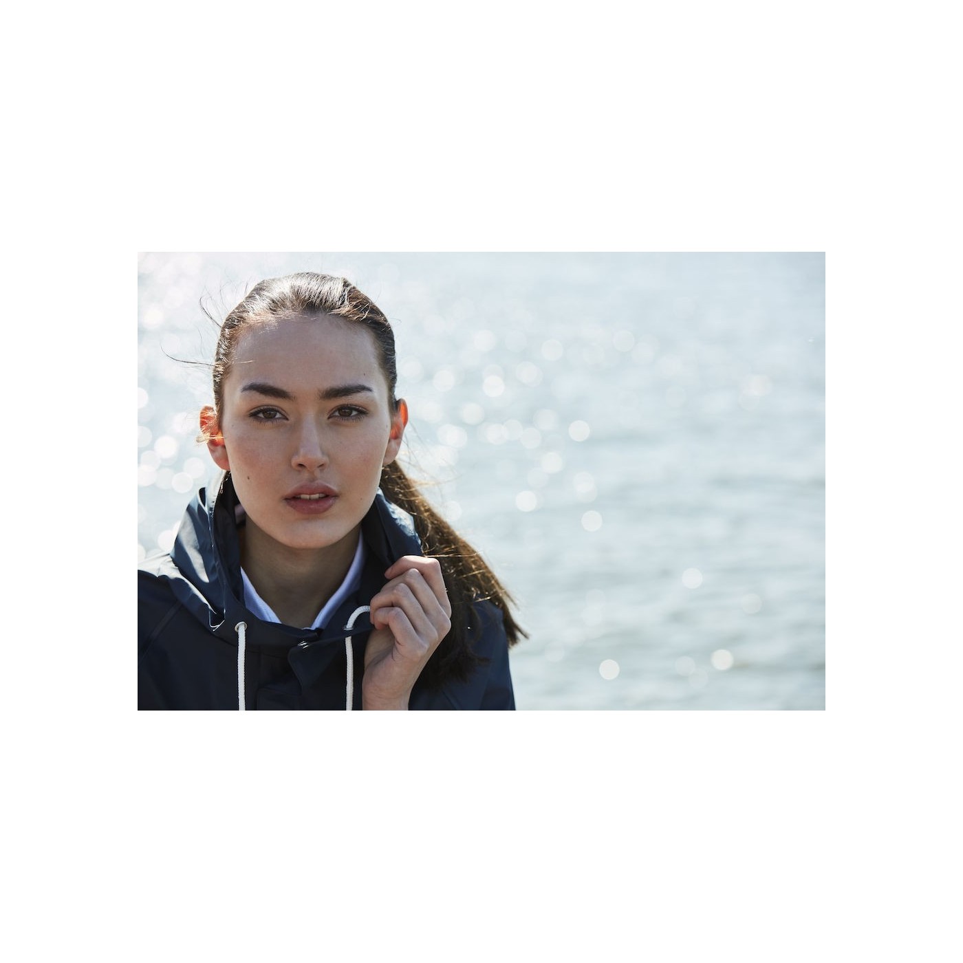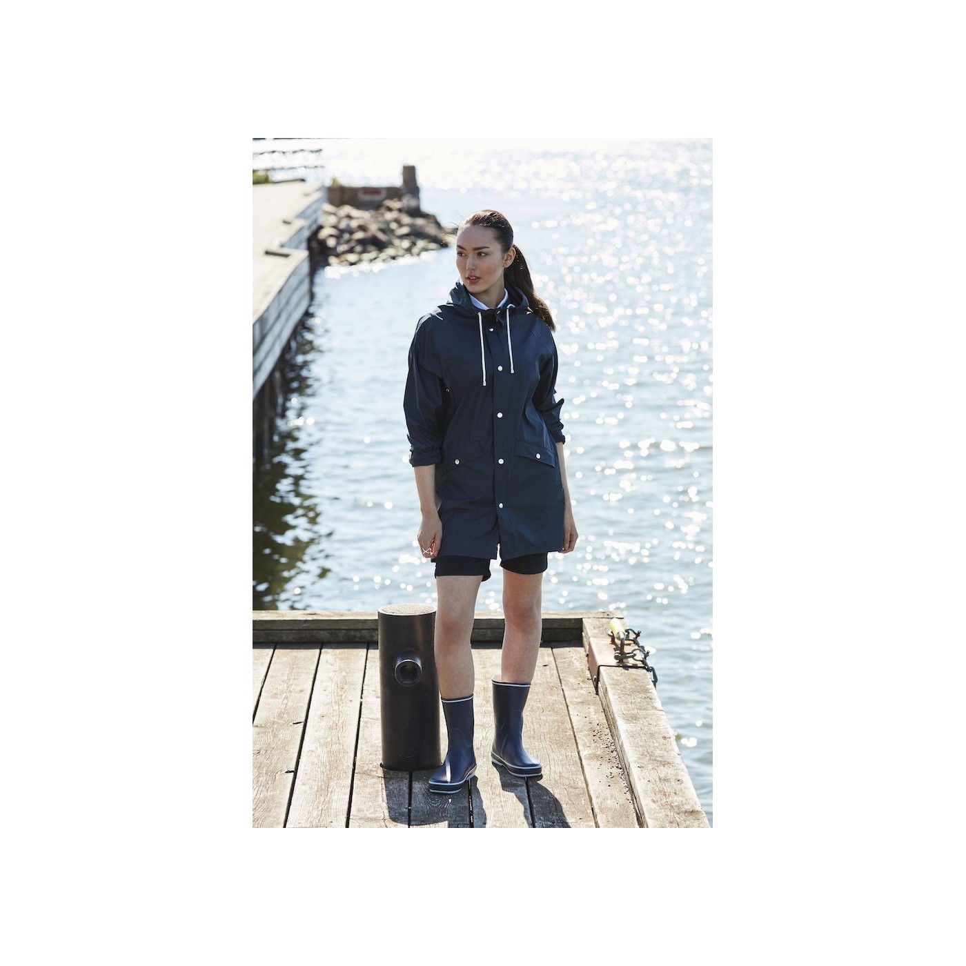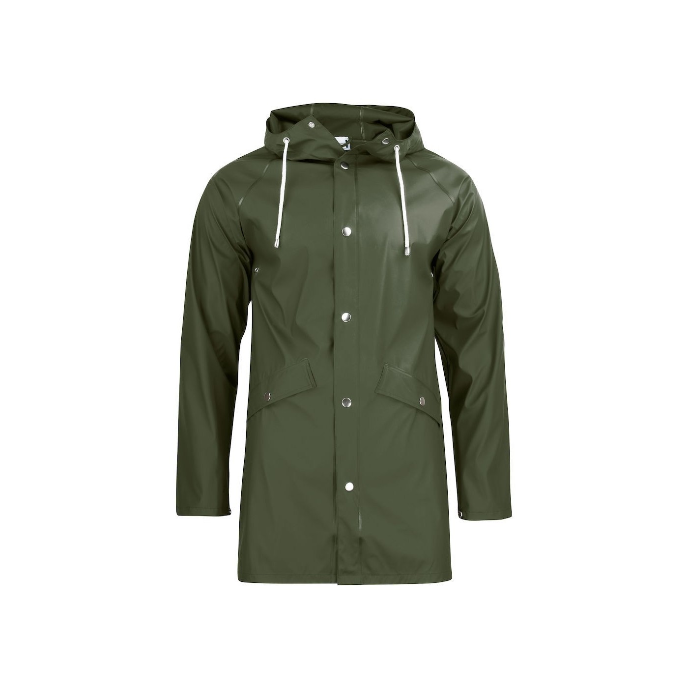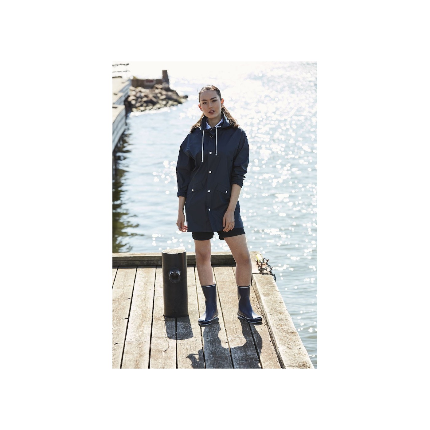Imperméable classique avec boutons pression en métal. Capuche réglable avec arrêt. 2 poches avant avec rabat. Coutures scellées, WP 8000.