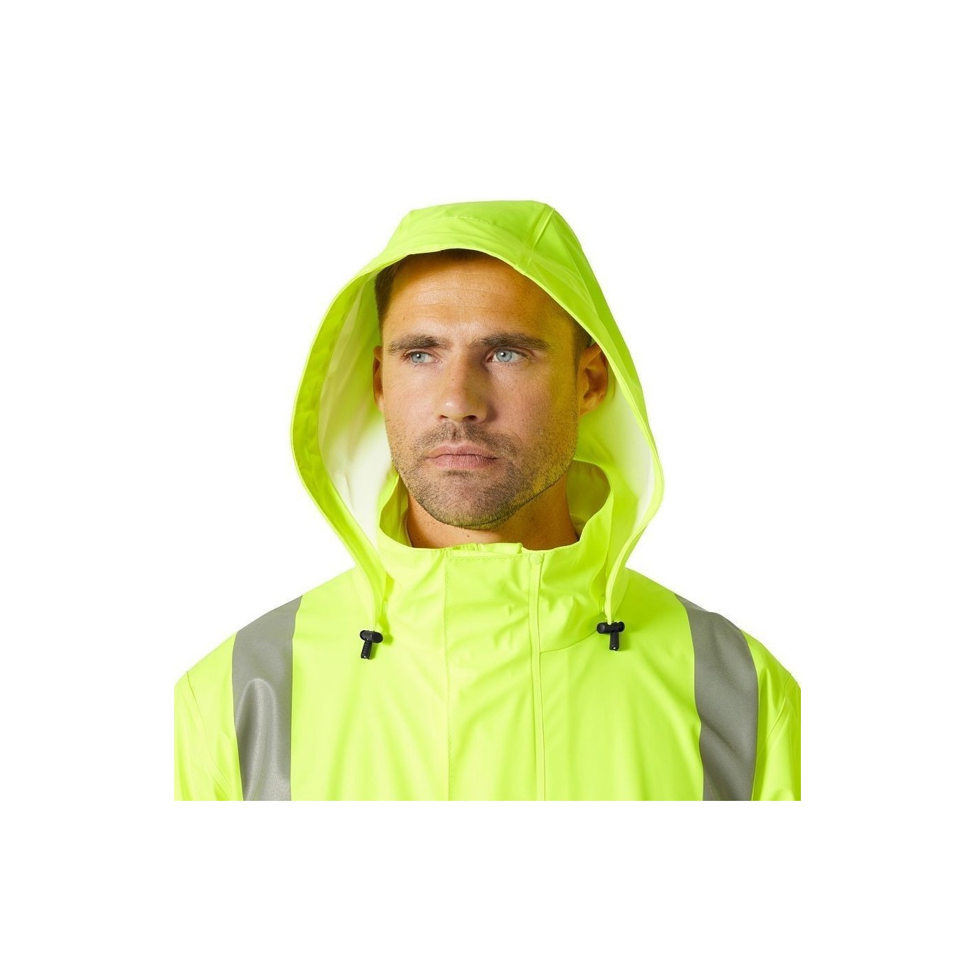 La veste de pluie Helly Hansen® Addvis 70155 assure une haute visibilité et une protection imperméable (EN ISO 20471 Classe 3, EN 343 Classe 4,1,X) avec tissu 100% polyuréthane, fermeture YKK® et capuche amovible.