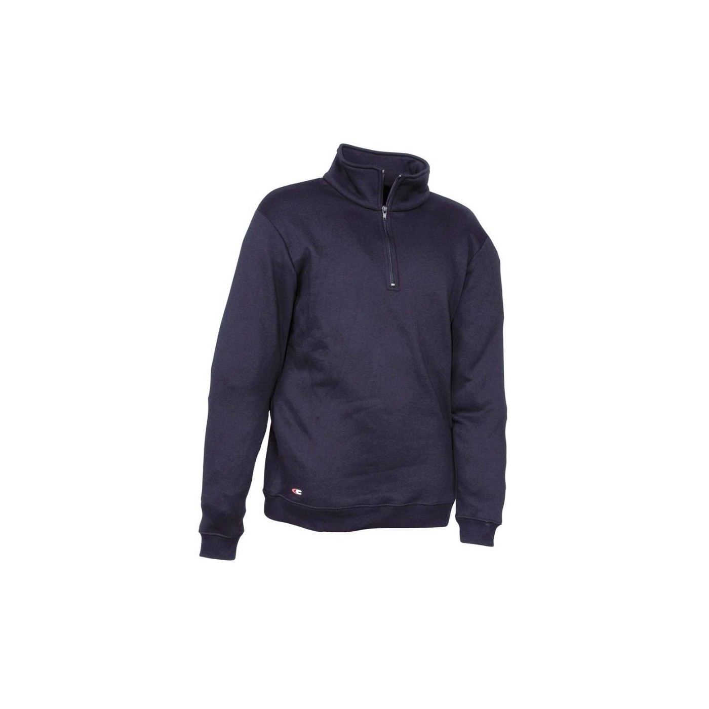 Sweat-shirt avec demi-fermeture éclair sur le cou. Il a un élastique au bas du vêtement et des manches.