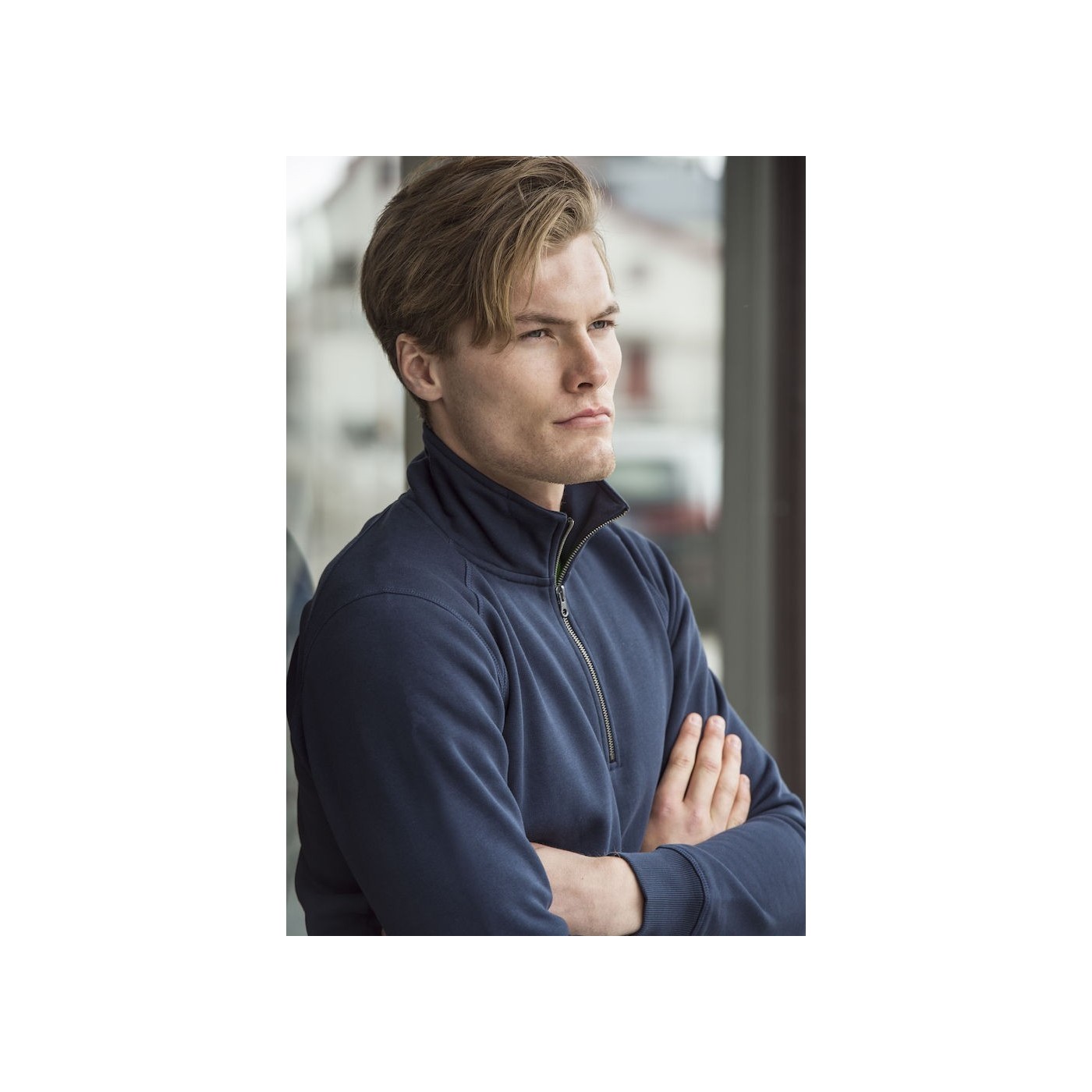 Sweat-shirt unisexe à demi-zip avec coutures assorties.