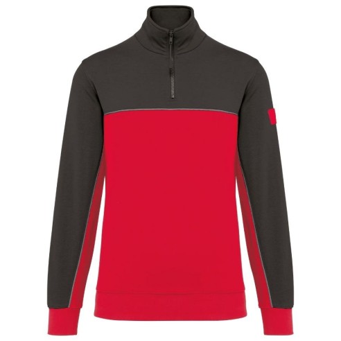 Sweat-shirt unisexe 1/4 zip écoresponsable de WK, en molleton gratté 280 g/m² avec 60% coton et 40% polyester recyclé. Design bicolore moderne, coupe ajustée et pratique porte-stylos sur la manche.