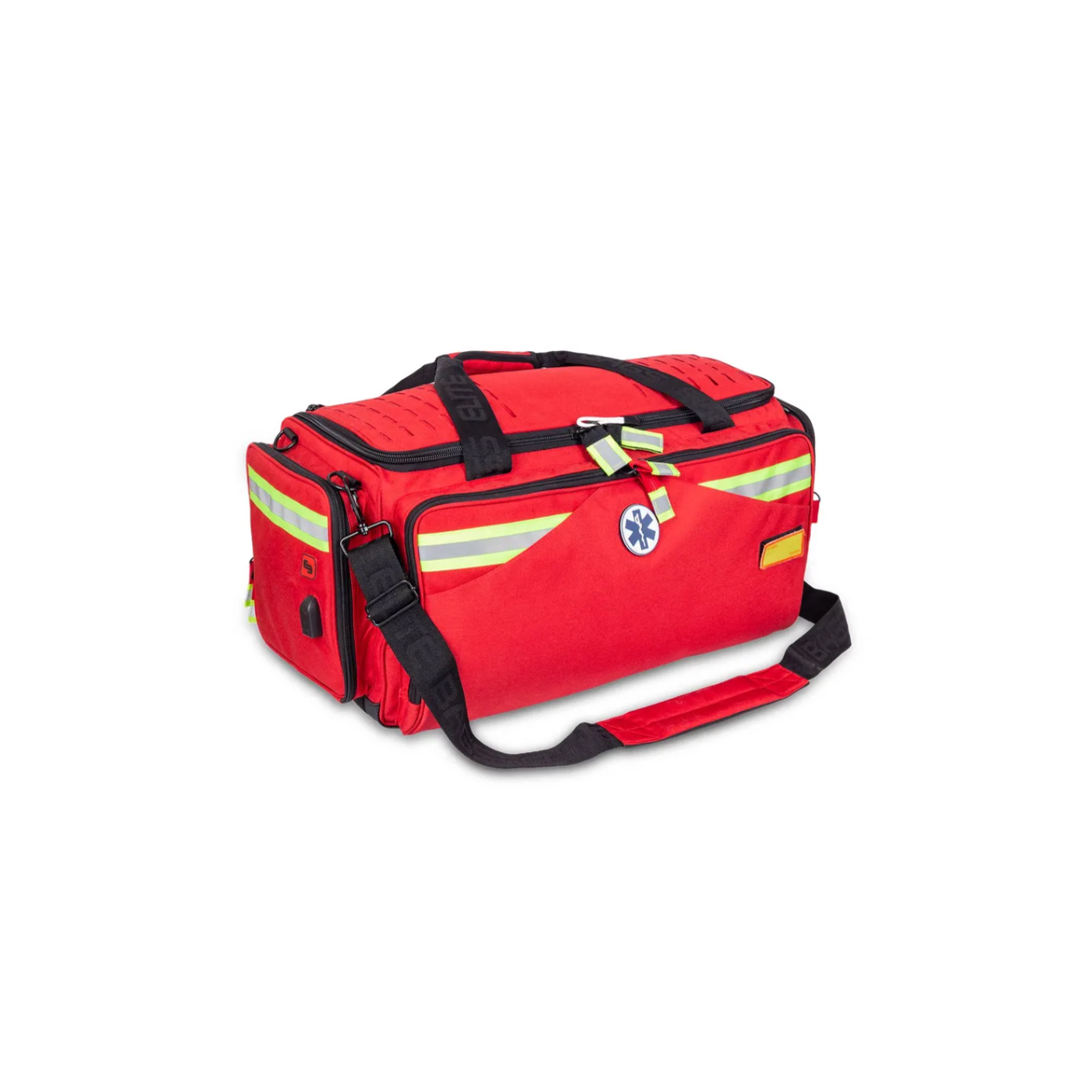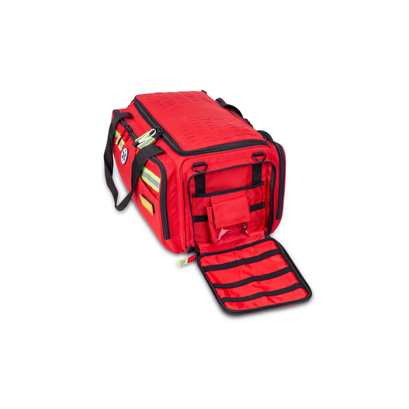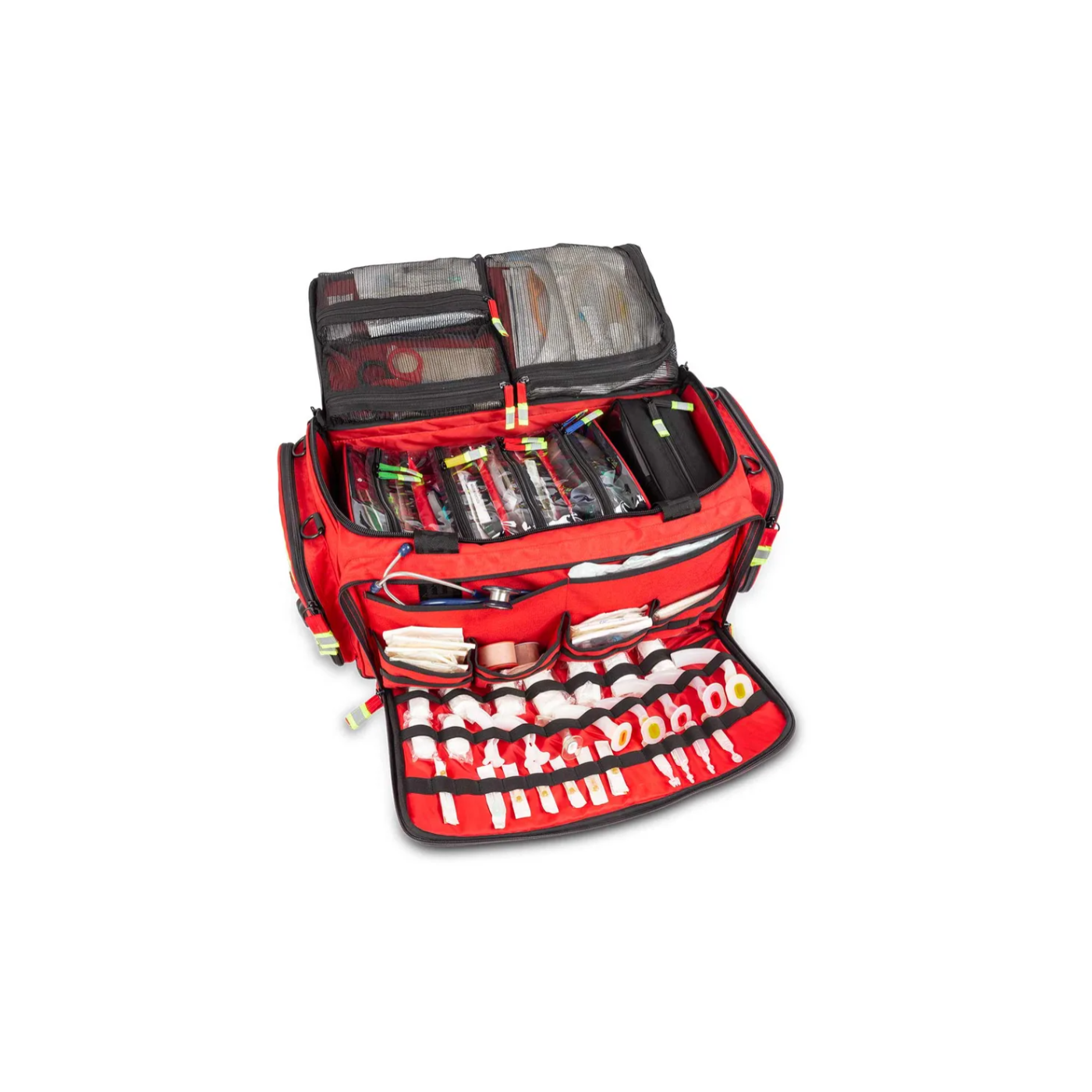 Il accueille à la fois la bouteille d'oxygène et tout le matériel médical nécessaire pour soigner les patients en état critique. Il dispose d'un panneau amovible avec quatre sections et des poignées colorées selon le code couleur international. L'intérieur est entièrement ajustable grâce à ses séparateurs rembourrés et amovibles avec velcro.