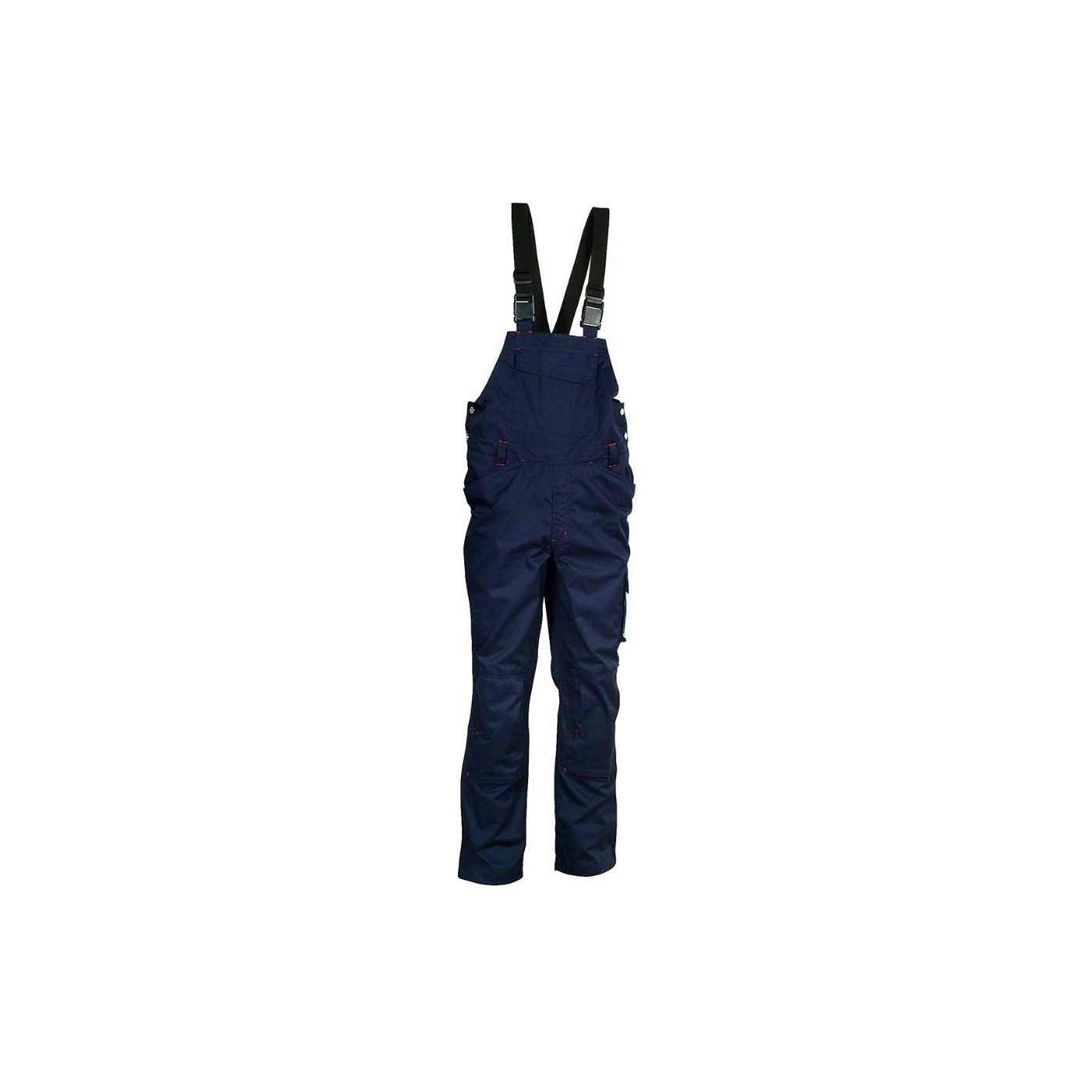 Salopette de travail Cofra MOMBASA avec pochette pour genouillère réglable, grand espace de rangement, taille réglable et passant de ceinture. Fabriquée en polyester et en coton, disponible en plusieurs couleurs. Idéale pour la construction, l'industrie et la logistique.