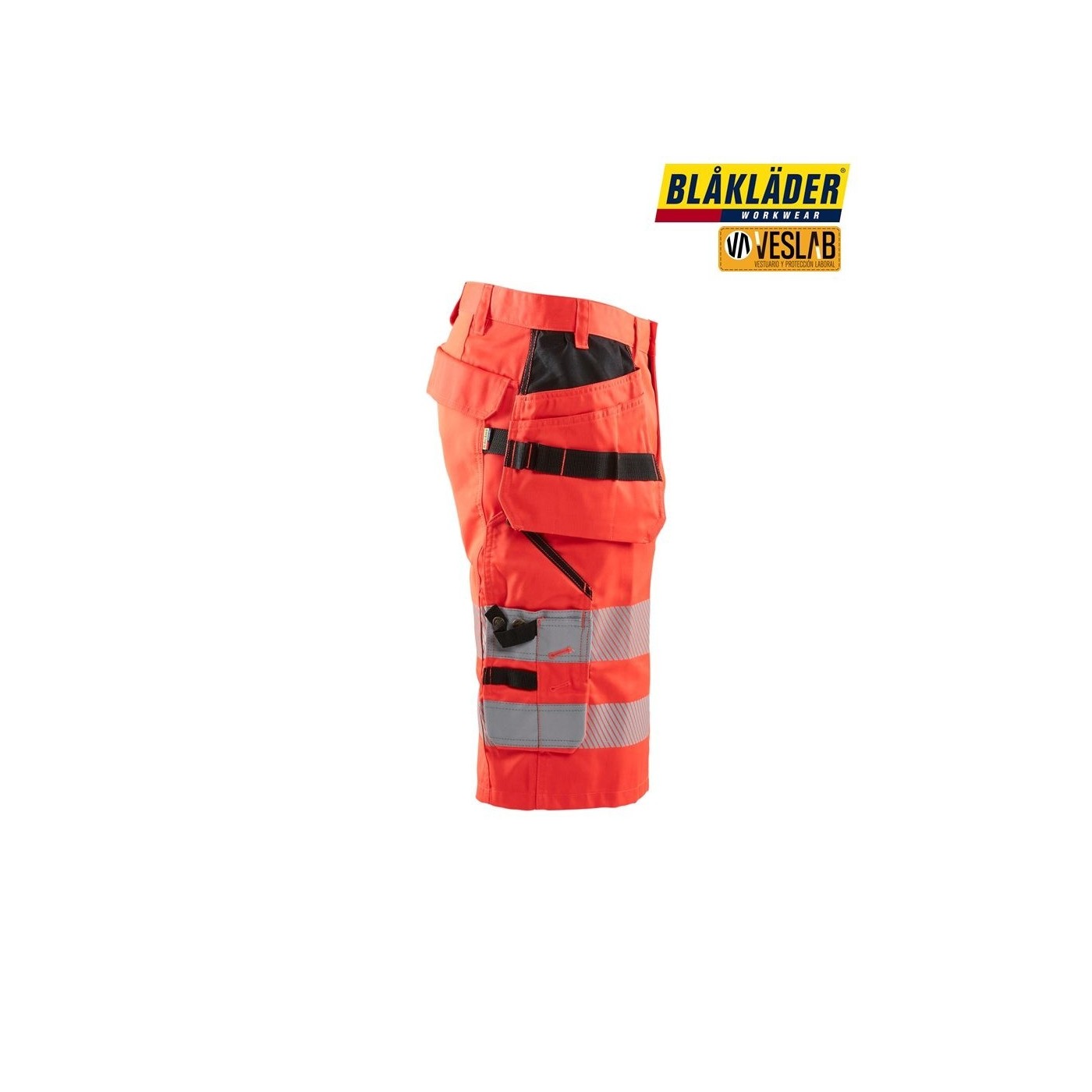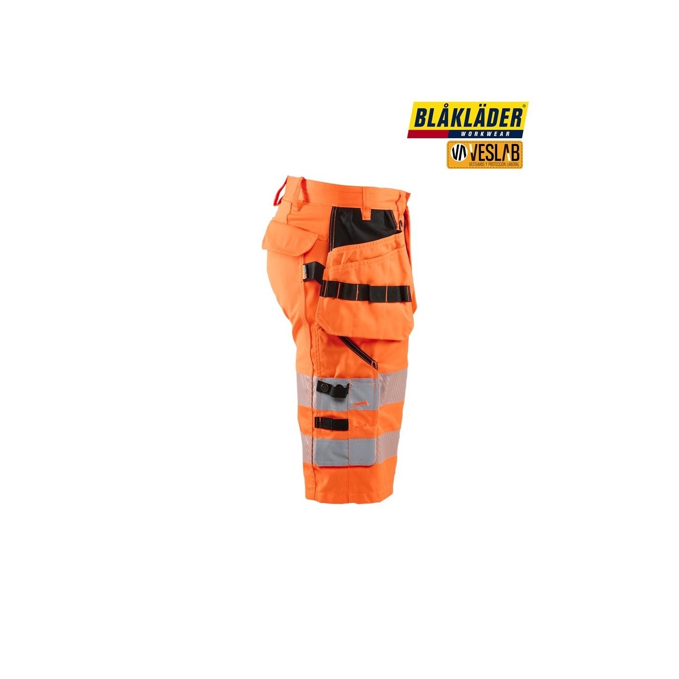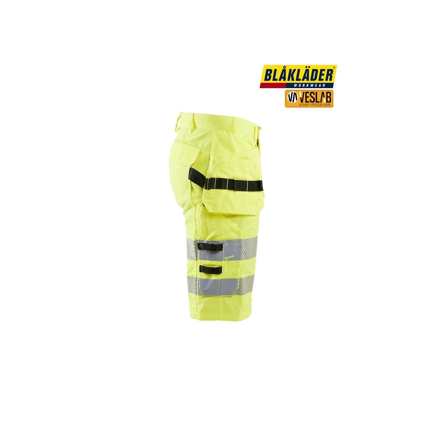 Short haute visibilité extrêmement confortable et flexible avec panneaux extensibles à l'entrejambe, à l'empiècement et au siège. Un short haute visibilité de classe 2, basé sur le pantalon Blåkläder 1552. Comprend des détails réfléchissants, une poche arrière à rabat, une poche pour téléphone portable, une poche pour carte d'identité et une poche renforcée CORDURA®, ainsi qu'une poche à clous. Certifié selon EN ISO 20471, classe 2. Certificat combinaison X.