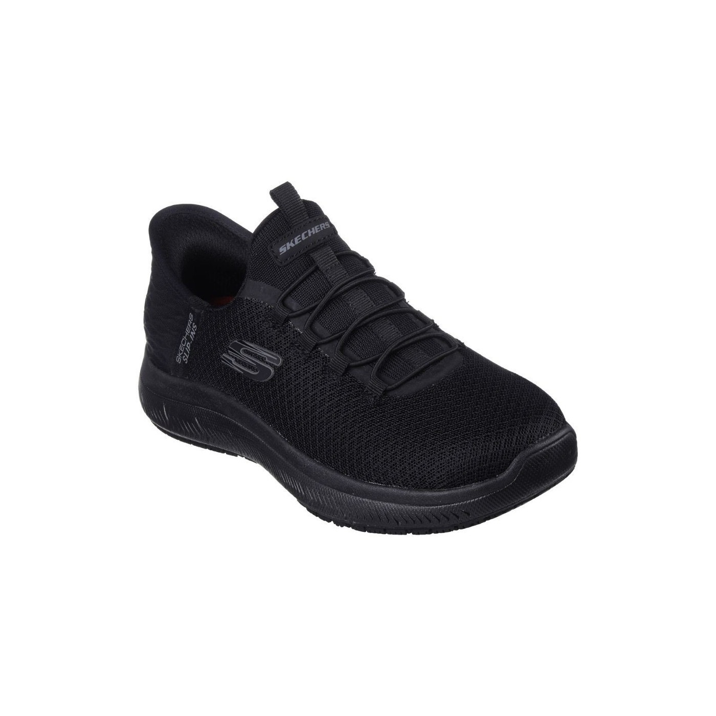 Les chaussures de Travail Skechers Slip-Ins Summit pour Homme sont antidérapantes SRC pour la sécurité sur les surfaces glissantes. Technologie Heel Pillow et Memory Foam pour un confort toute la journée. Design durable et moderne avec une ventilation optimale. Conforme aux normes de sécurité EN ISO 20347:2022.