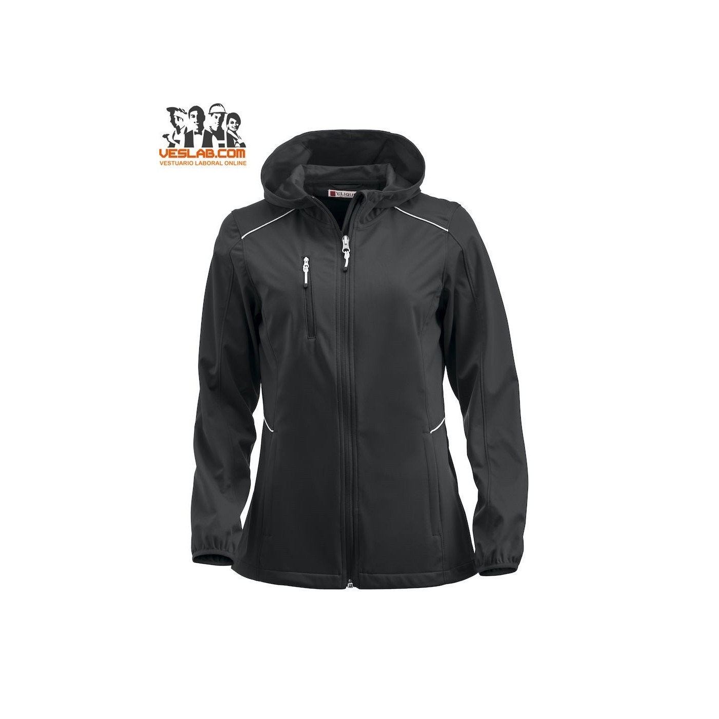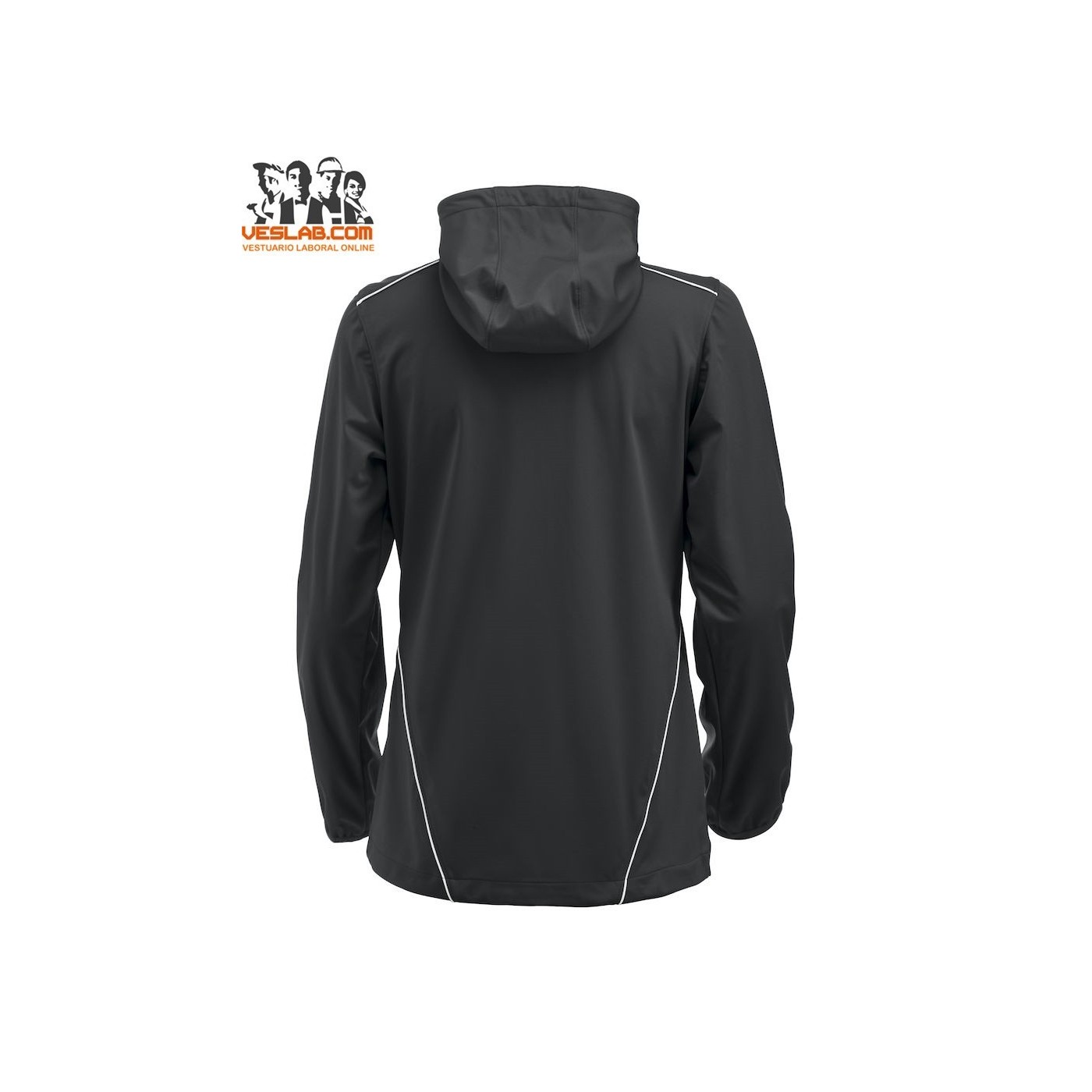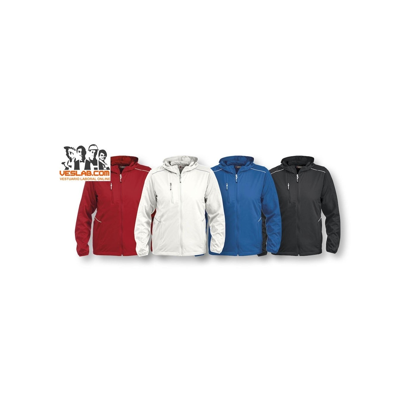 Veste de sport Softshell en matière élastique. Deux poches latérales et une avant avec fermeture à glissière. Live réfléchissant.