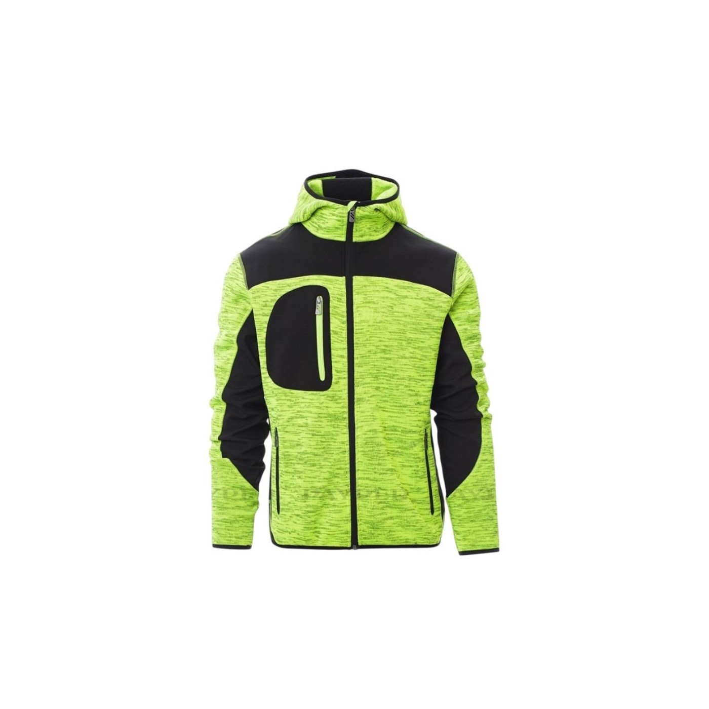 Elle comprend une capuche à double couture, une fermeture zippée SBS, deux poches latérales et une poche poitrine. Son design ajusté et ses inserts noirs en font une veste professionnelle et élégante.