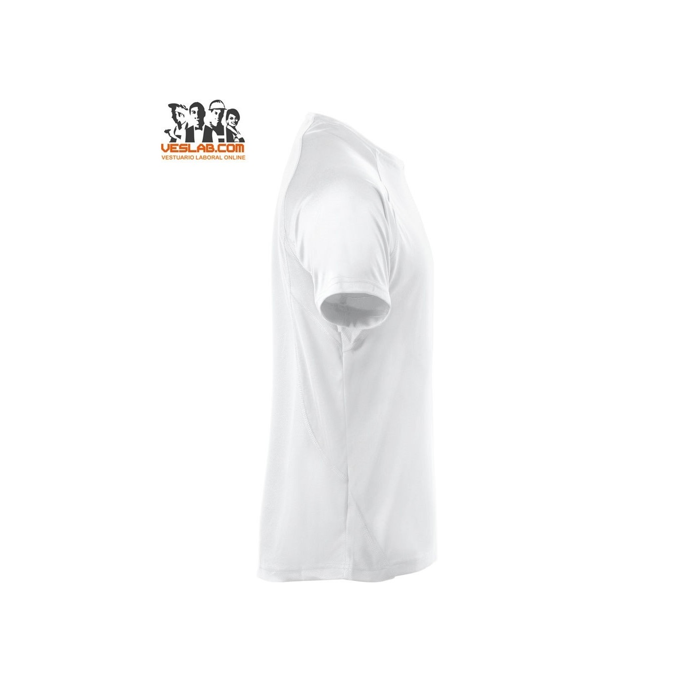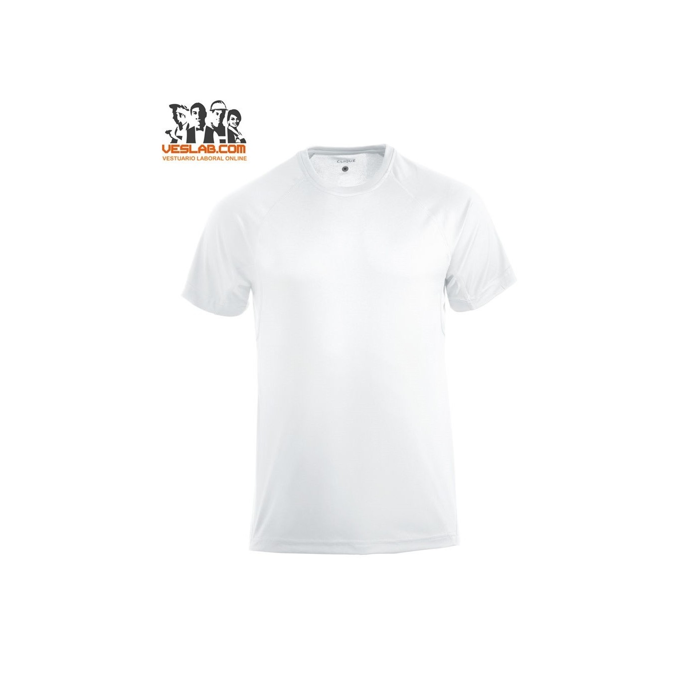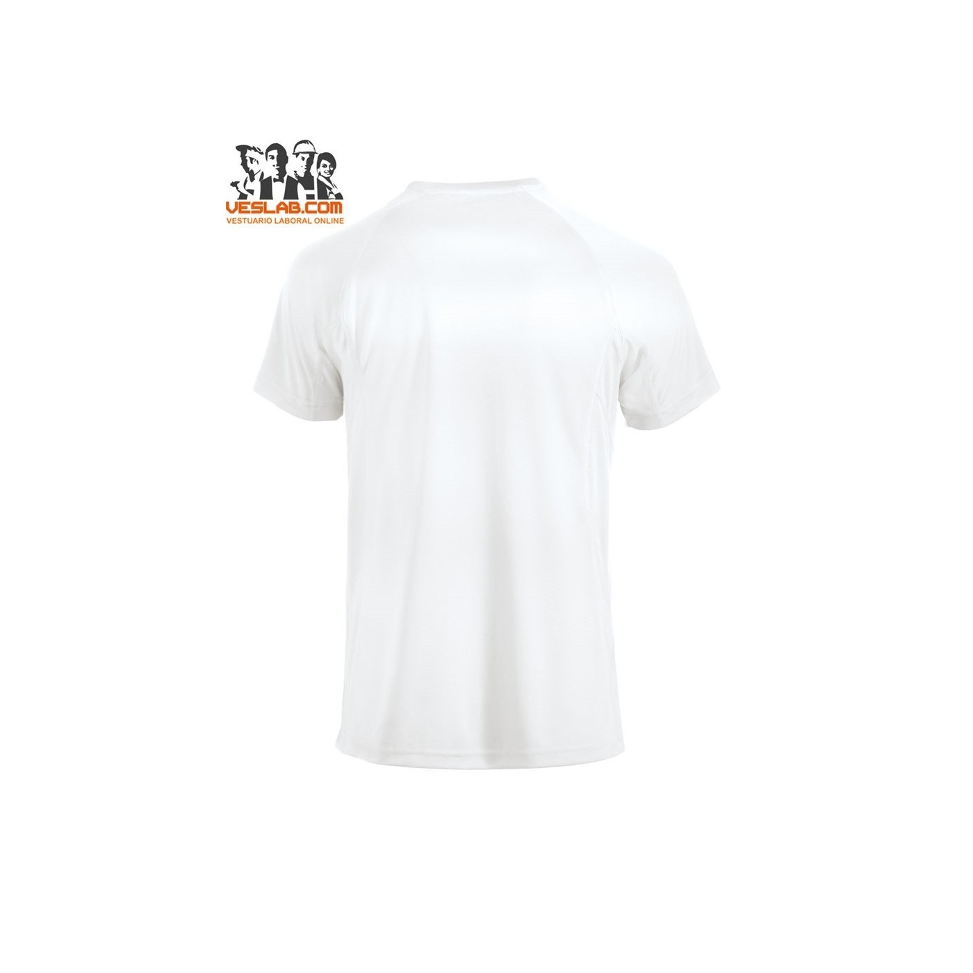 T-shirt de sport blanc à manches courtes fonctionnelle en polyester technique pour femmes.