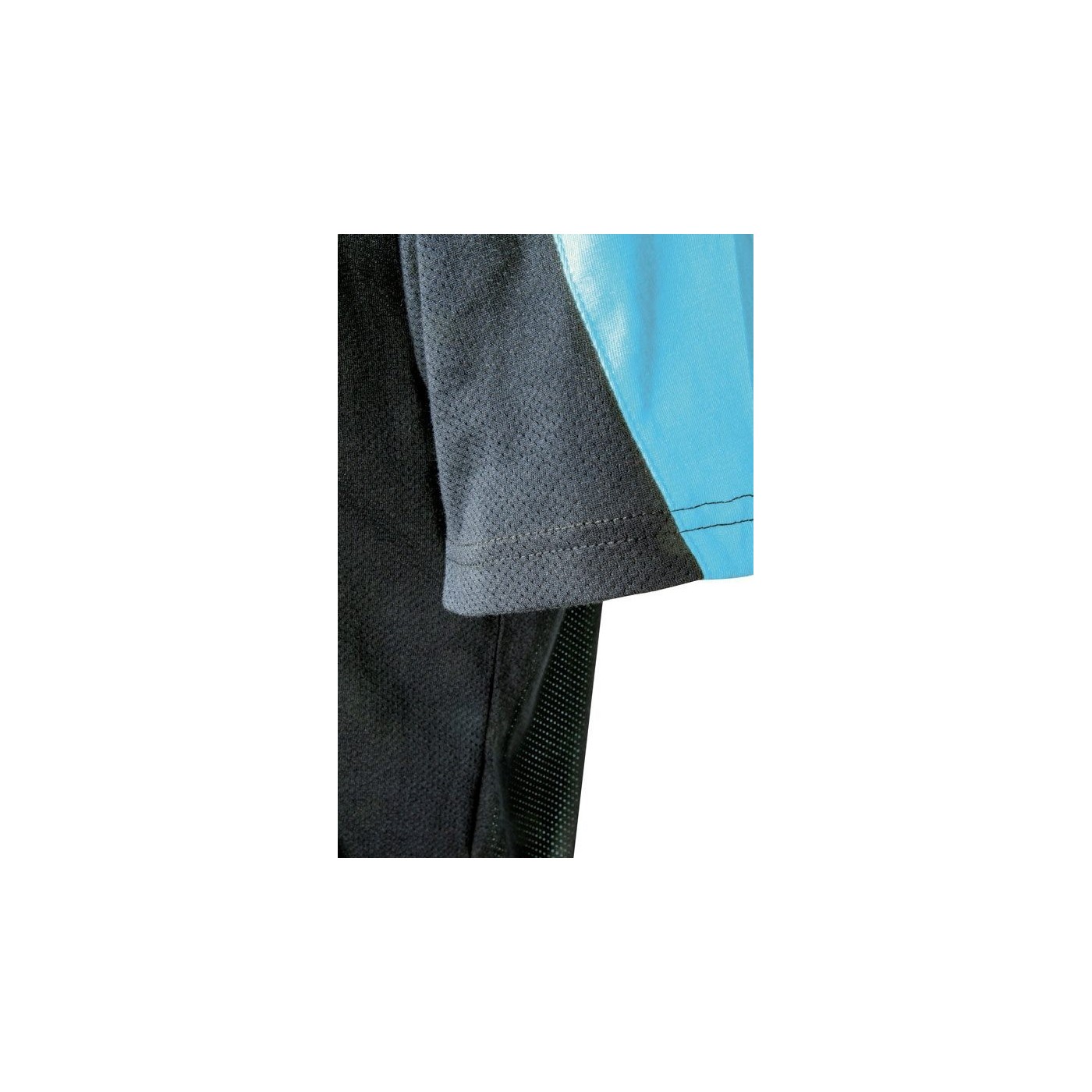 C'est un t-shirt bicolore en composition 100% coton qui se distingue par ses empiècements en tissu coton perforé sur le côté des épaules et des aisselles pour offrir une meilleure respirabilité.