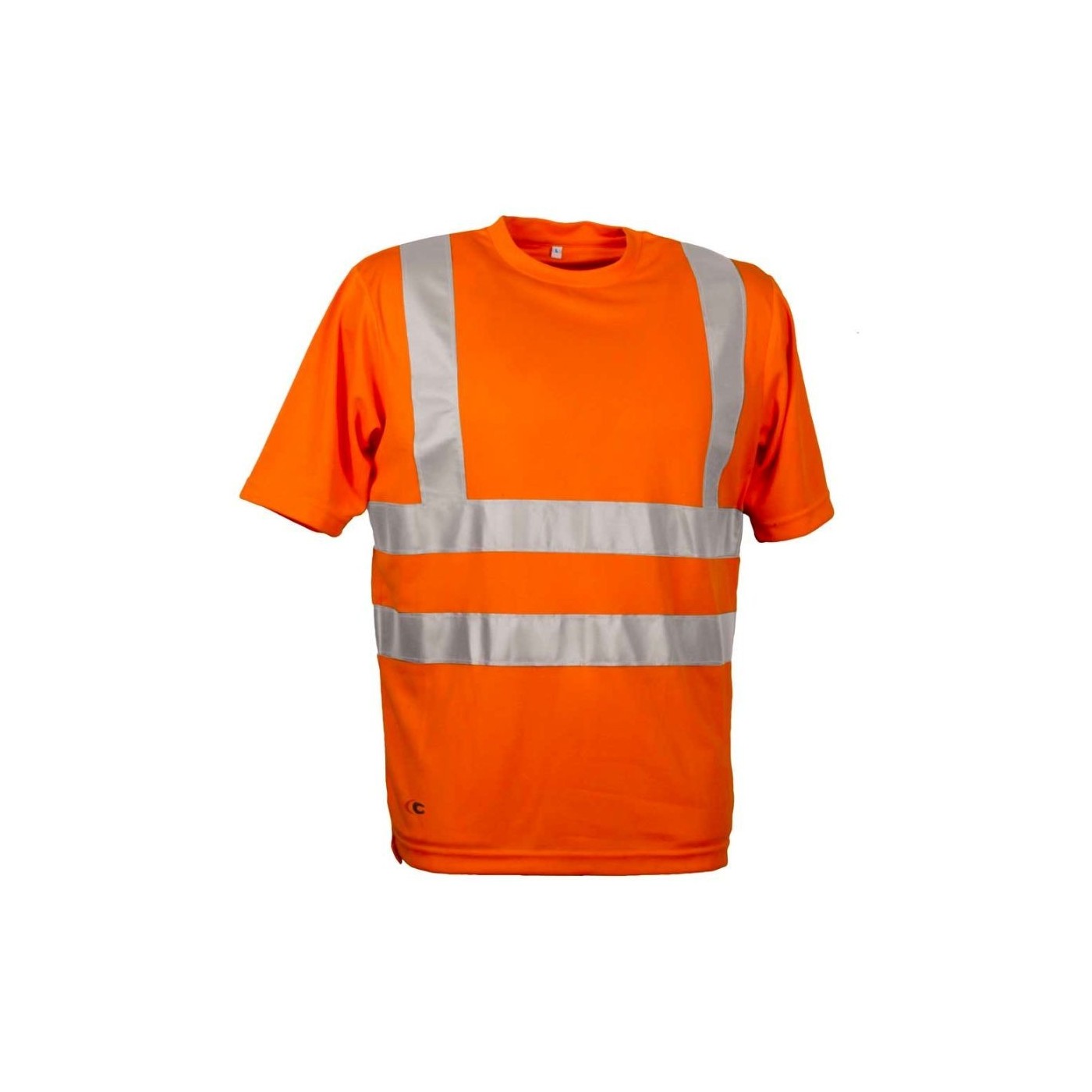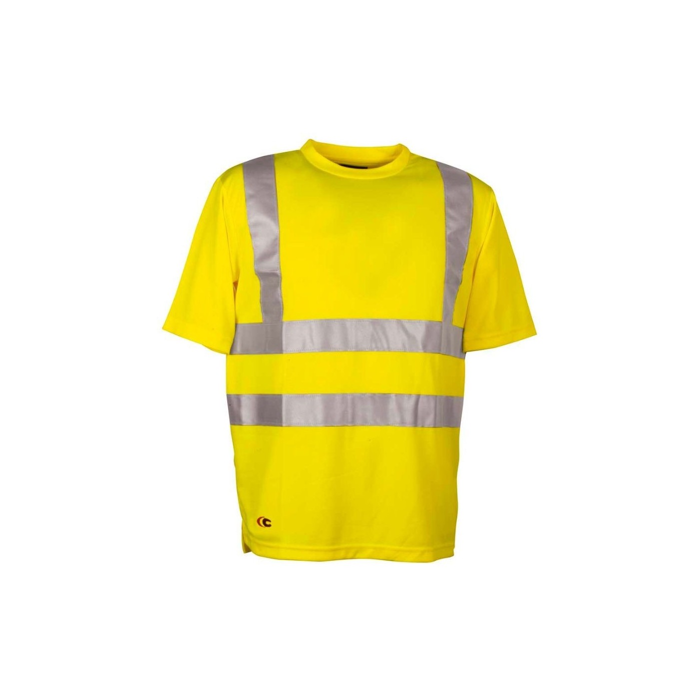 T-shirt haute visibilité Cofra idéale pour l'été, avec des ouvertures latérales et un tissu respirant en 3D. Conforme aux normes EN ISO 13688:2013 et EN ISO 20471:2013/A1:2016. Fabriquée en 100 % polyester 3D de 150 g/m², disponible en jaune et orange. Parfaite pour le travail dans les aéroports, l'agriculture, l'industrie et plus encore, avec des profils réfléchissants et sans détection de métaux.